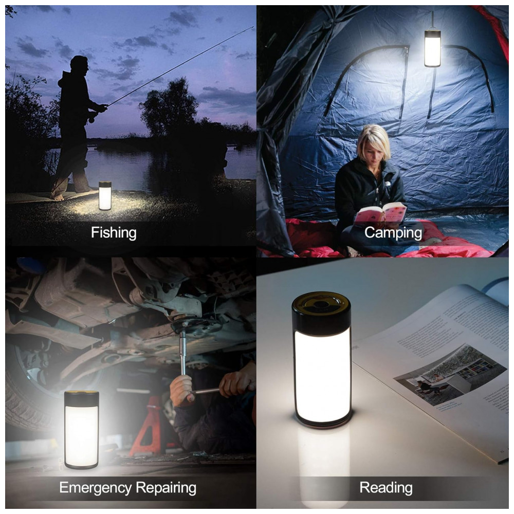 Função de banco de energia e recarregável Estas lanternas de acampamento são recarregáveis, podem ser totalmente recarregadas via cabo USB em torno de 2 horas, então uma luz pode durar de 3 a 10 horas, mais conveniente e ecológica do que outras lanternas que precisam de pilhas AA.