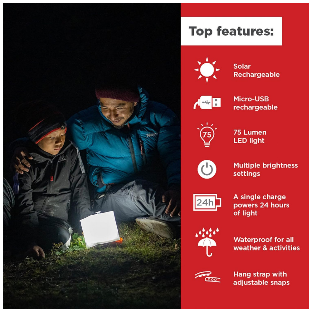 Lanterna Solar Inflável Portátil e Recarregável 75 Lumens, 18H, IP67, LUMINAID, Branco: Fabricado nos EUA ou importado Lanterna brilhante movida a energia solar com 75 lumens de luz LED.