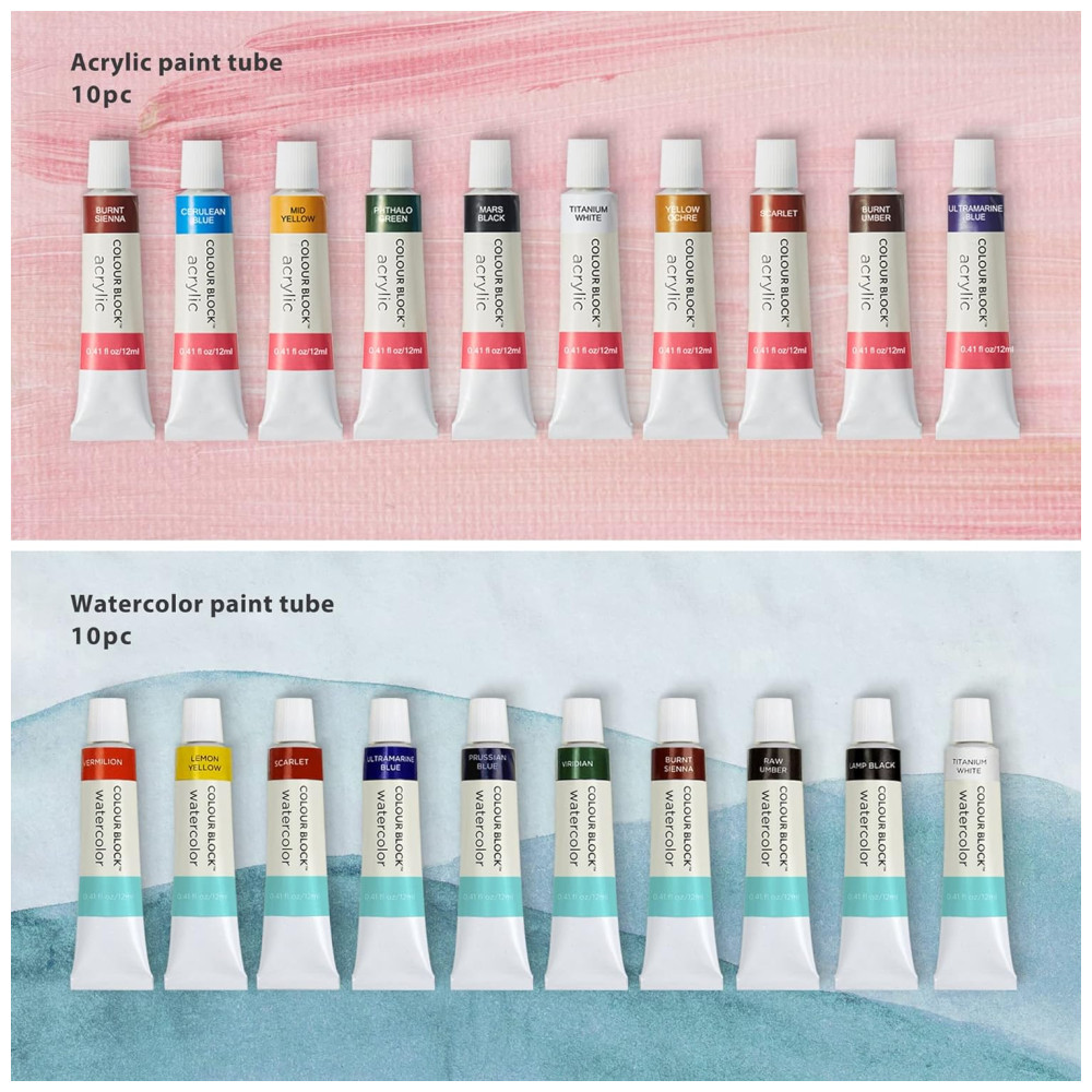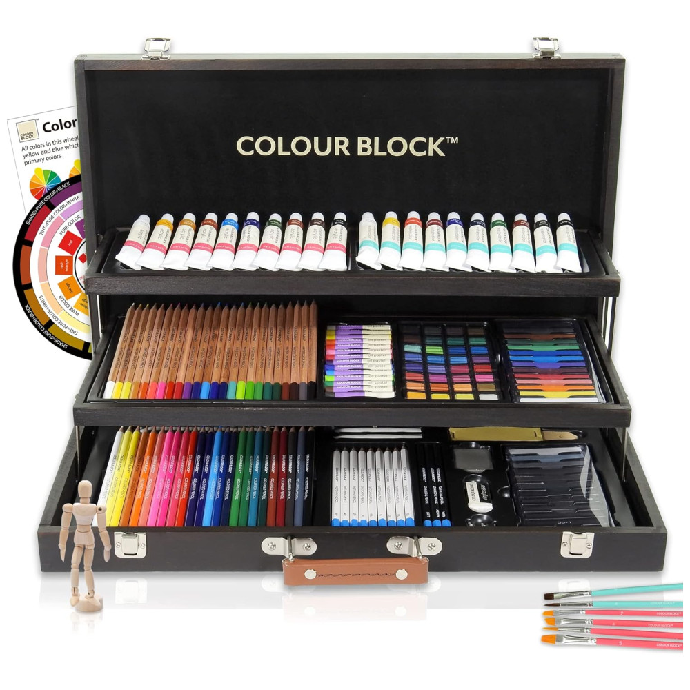 COLOR BLOCK 181 pc Conjunto de arte em mídia mista em estojo de madeira Pastéis macios e a óleo, Tintas acrílicas e de aquarela, Lápis de desenho, carvão e lápis de cor e ferrament…