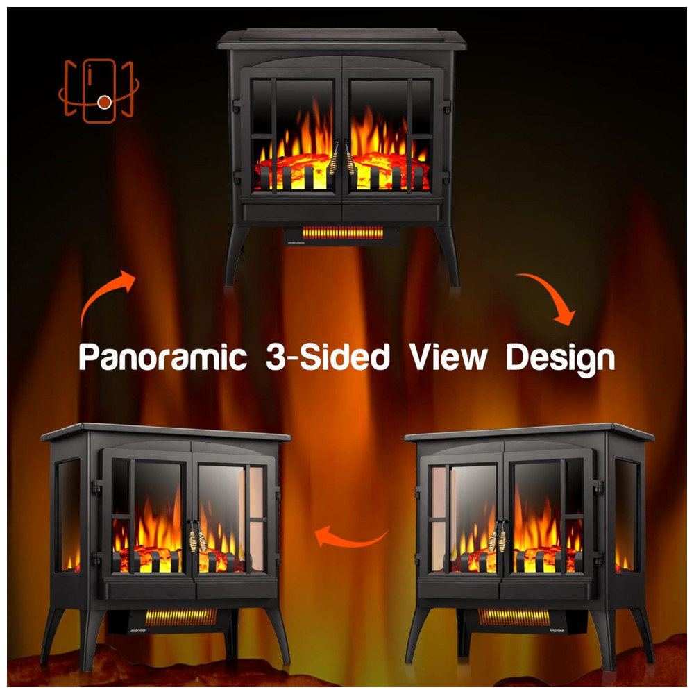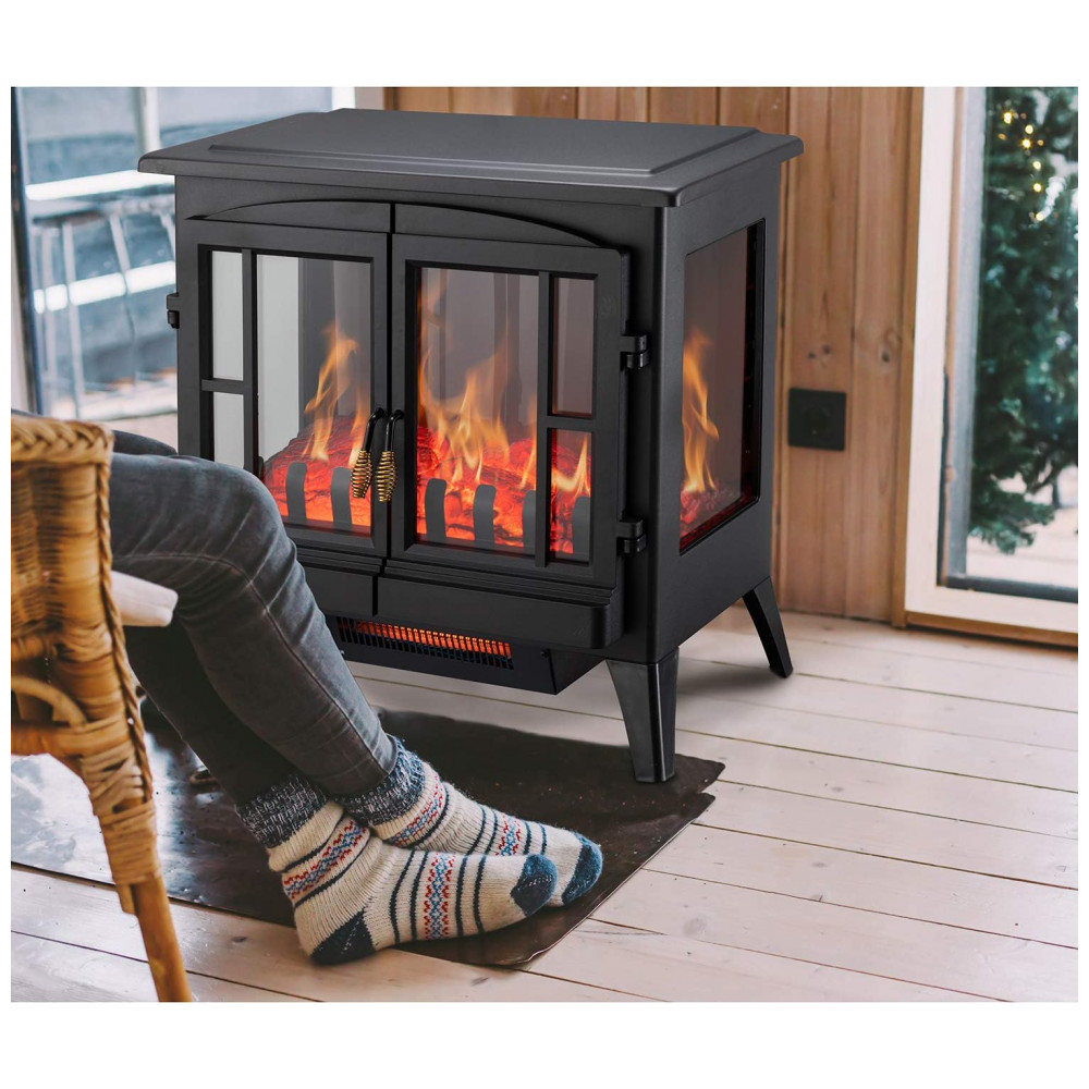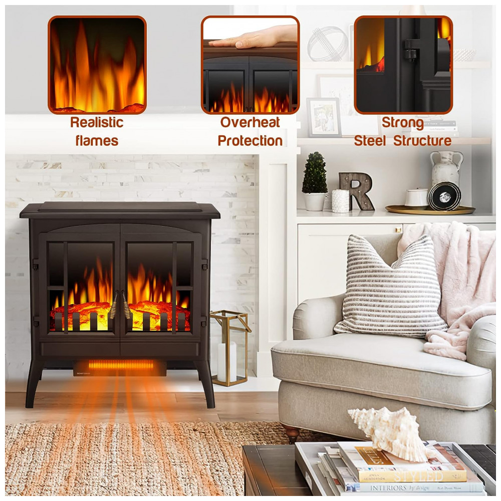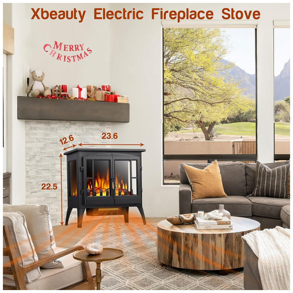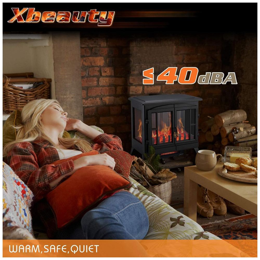 Lareira Elétrica Realista e Portátil, Segura 1000W, 1500W, XBEAUTY, Preto