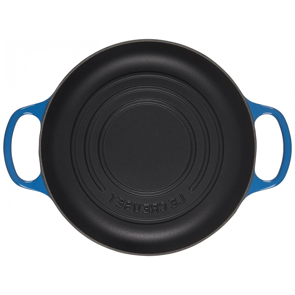Le Creuset Panela de Ferro Fundido Forno de Pão 2L com Cozimento Uniforme, Azul: Fabricado a partir do nosso lendário ferro fundido para distribuição e retenção de calor excepcionais A tampa abobadada apertada é especialmente projetada para reter e circular o vapor para criar uma crosta crocante, crescimento máximo e excelente sabor A base de baixo perfil levantou sulcos para dourar uniformemente e marca o pão com os três anéis Le Creuset O acabamento de esmalte de porcelana não requer tempero, minimiza a aderência e resiste ao embotamento, manchas, lascas e rachaduras O esmalte interior acetinado preto fosco é fácil de limpar e manter e desenvolve uma pátina ao longo do tempo para melhorar o desempenho de cozimento