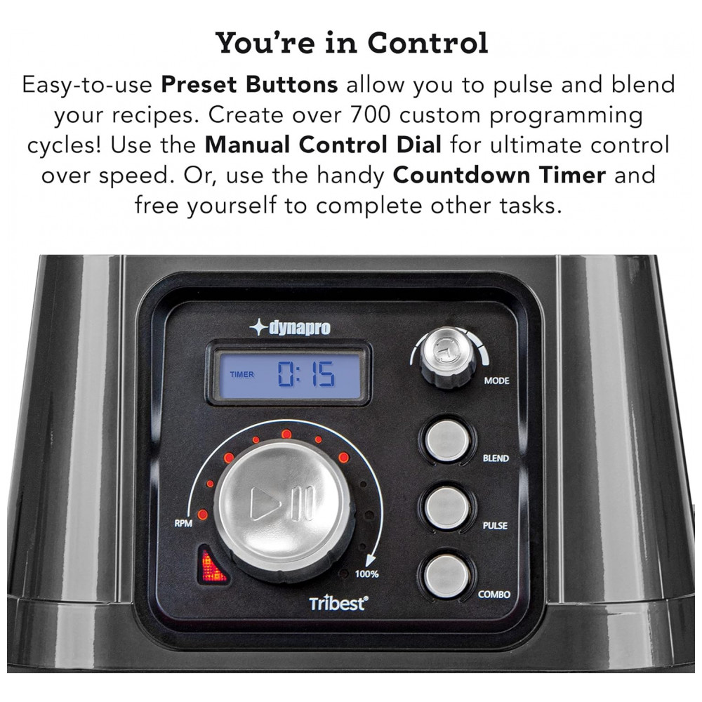Liquidificador 2L de Alta Velocidade 2.5HP 32.000RPM, escuro, escuro, 110v, TRIBEST Dynapro DPS 2250 GY, Cinza escuro: Conheça o Liquidificador Comercial de Alta Velocidade Tribest Dynapro com Vácuo Cinza Potente Mistura de Alta Velocidade O liquidificador comercial Dynapro apresenta um motor de pico de 2.