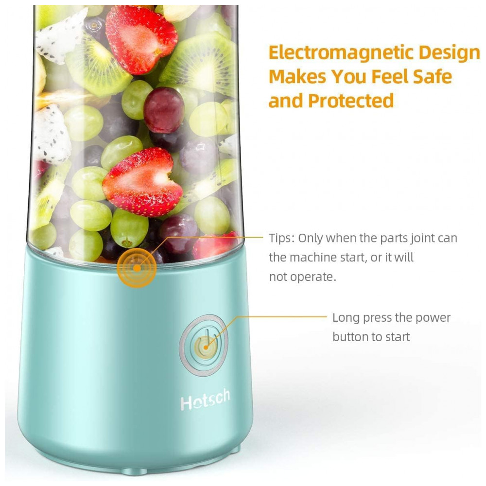 Apresentando o Liquidificador Portátil Hotsch Segurança de Alto Nível O liquidificador portátil Hotsch é livre de BPA e é feito de materiais PCTG ecológicos, atóxicos e seguros para alimentos.