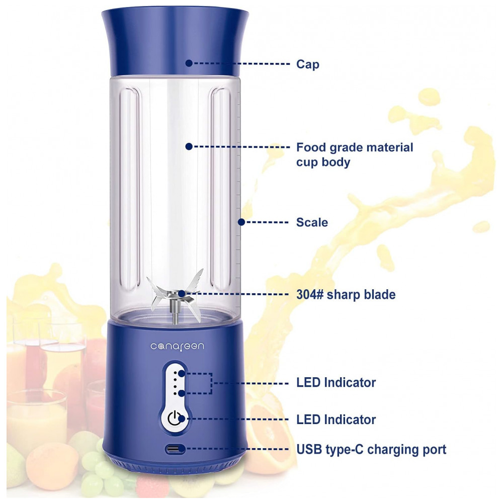 Liquidificador de Bancada Portátil 500 mL para Vitaminas, Recarregável 4000 mAh, AIKIDS, Azul