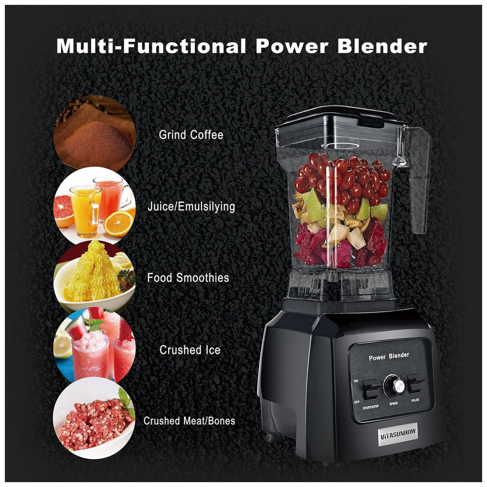 Liquidificador de Bancada Profissional 1L 10 Velocidades, 1300W, 110v, VITASUNHOW VT 9008, Preto: Descubra o Liquidificador de Alta Potência para Smoothies e Bebidas 1300W, Velocidade Variável, Jarra de 946ml Potência e Velocidade Variável Motor de alta potência de 1300 watts com controle de velocidade variável para mistura precisa, perfeito para fazer smoothies, shakes e bebidas congeladas.