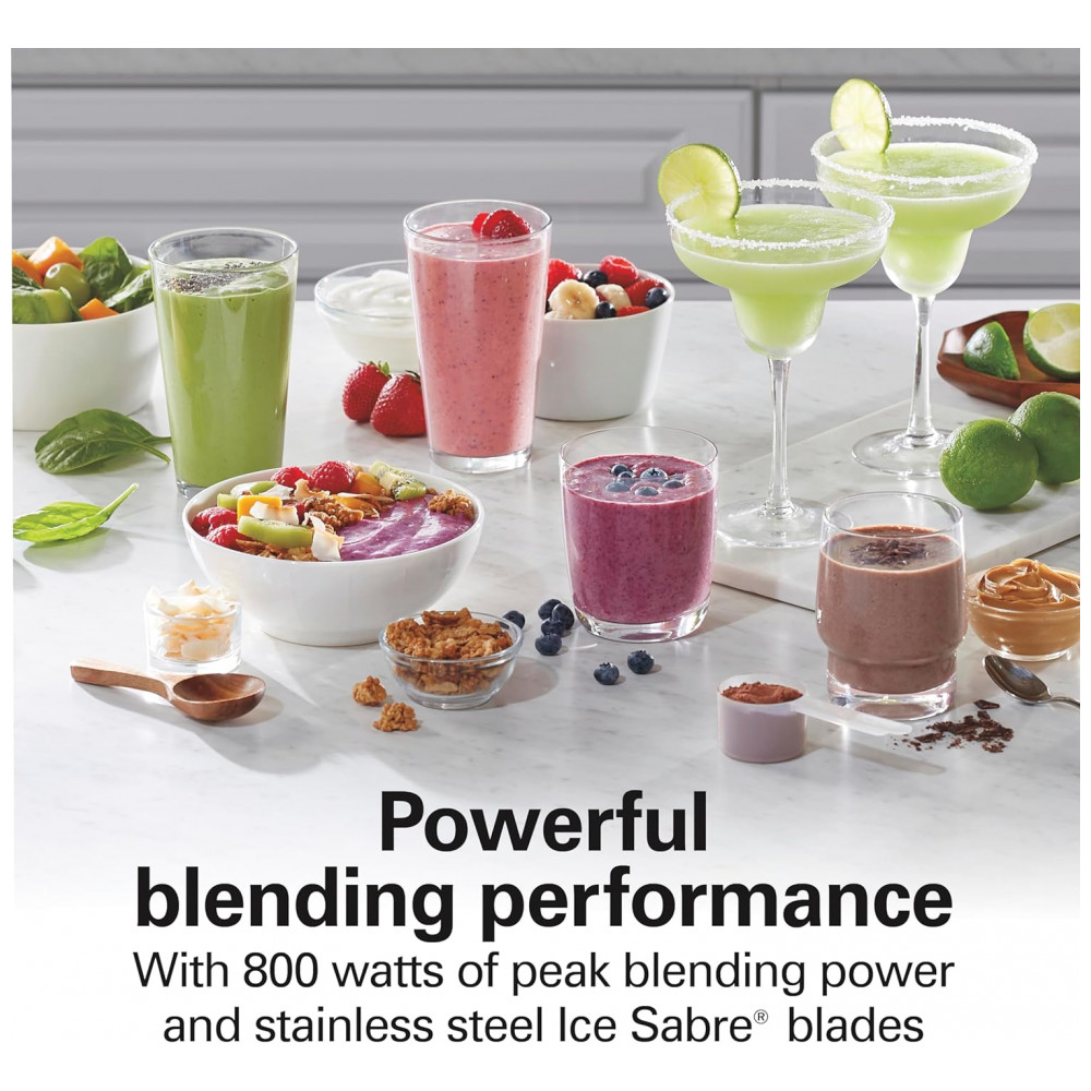 Descubra o Liquidificador Hamilton Beach Wave Action Inclui 2 JARRAS PARA MISTURA VERSÁTIL Uma jarra de vidro de 1,18 litros e uma jarra de viagem de 590 ml com tampa para viagem e…