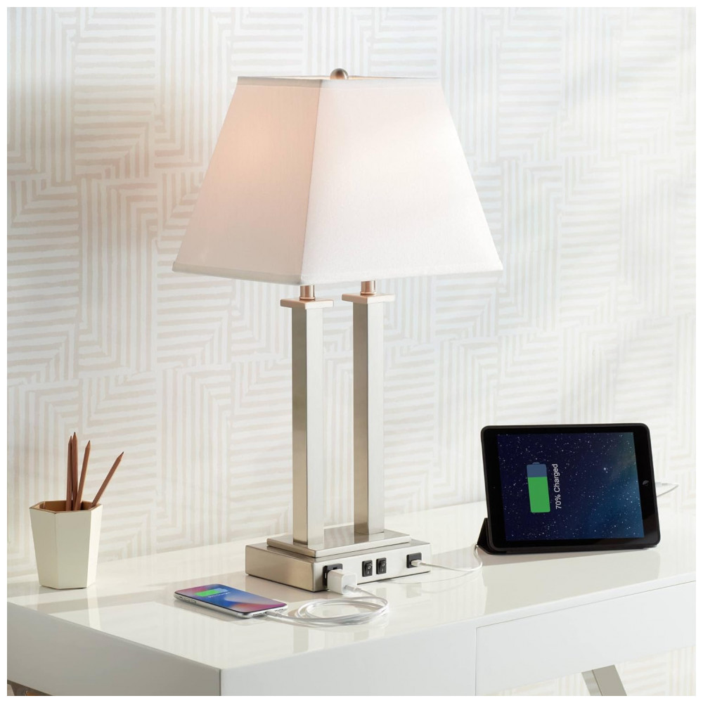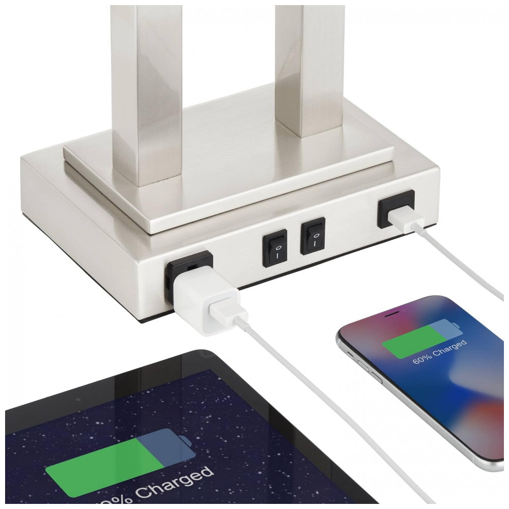Candeeiro de secretária USB com porta USB tipo 2A incorporada e tomada na base.