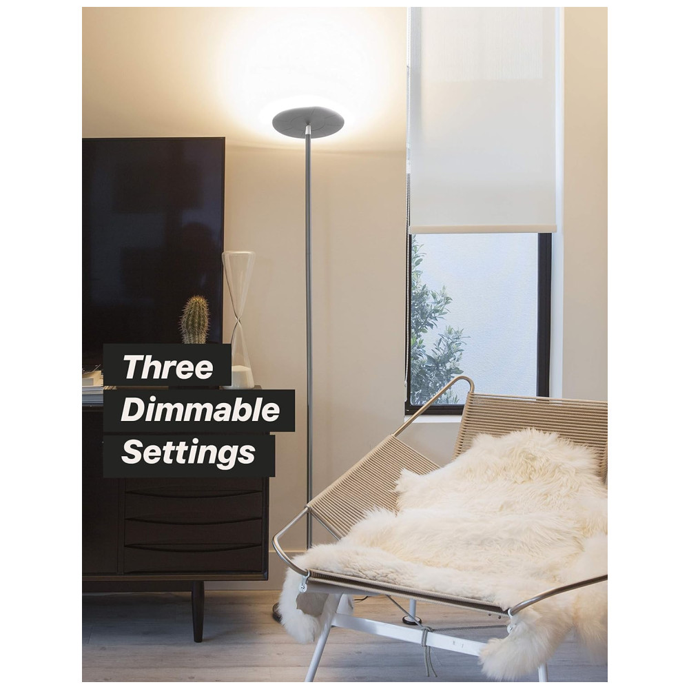 Luminária de Piso Contemporânea 2190 Lúmens Aço Escovado, BRIGHTECH SKYLED BNKL: ILUMINAÇÃO SUPER BRILHANTE 150 W A LÂMPADA DE TOCHA LED EQUIVALENTE ACENDE UMA SALA INTEIRA Você quer uma luz muito brilhante sem luminárias caras ou duras A lanterna Brightech Sky embala 2190 lumens em branco quente de 3000K o suficiente para iluminar uma sala grande Sua cabeça gira facilmente e brilha em qualquer direção que você precisar A LÂMPADA DE CANTO MODERNA É DIMMÁVEL DE 3 VIAS NOVA FUNÇÃO DE MEMÓRIA SALVA A CONFIGURAÇÃO DE BRILHO PARA A PRÓXIMA VEZ O Sky combina uma decoração moderna minimalista urbana casual e contemporânea A lâmpada do poste se encaixa facilmente nos cantos e a base desliza sob os sofás O dimmer integrado de 3 vias desta lâmpada de mastro vertical agora lembra sua configuração de brilho para a próxima vez que você ligá la e funciona com interruptores de parede LEDs com vida útil de 20 anos ECONOMIZE ENERGIA OBTENHA ALTO BRILHO NÃO ALTA WATTAGE Esses LEDs são avaliados para durar 20 anos assumindo 3 horas de uso por dia porque não desperdiçam energia como lâmpadas halógenas CFL e incandescentes Em vez de lâmpadas halógenas queimando 200 300 watts o Brightech Sky consome apenas 26 watts E você não precisa substituir nenhuma lâmpada porque a luz é integrada A temperatura de cor dos LEDs é de 3.