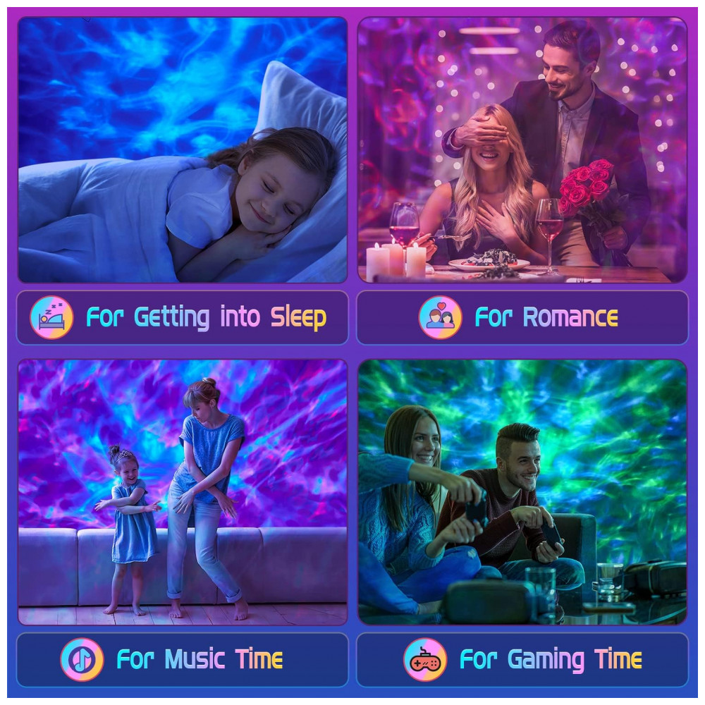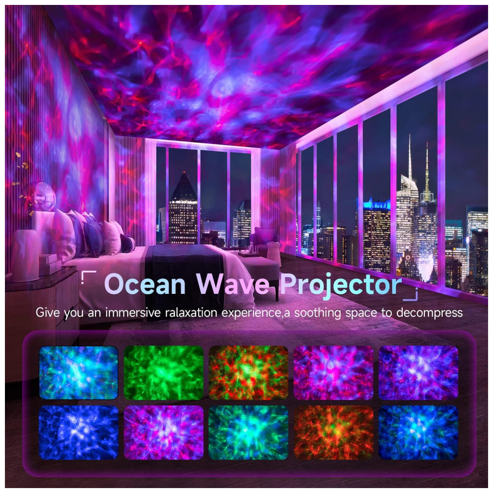 BELA EXIBIÇÃO, PREENCHE UMA SALA GRANDE FACILMENTE O projetor de luz estelar das ondas do mar vem em azul, vermelho e verde e você pode filtrar a cor que desejar ou passar por toda…
