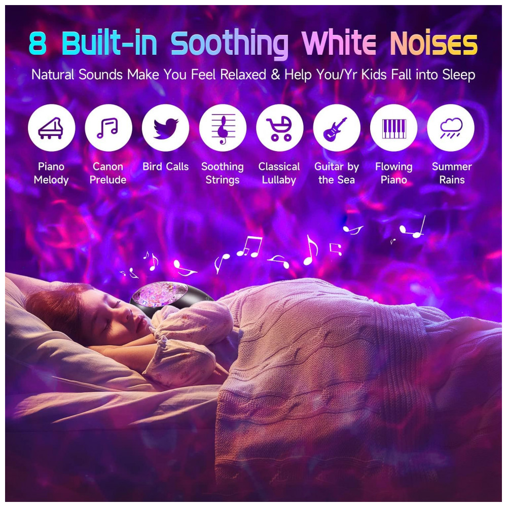 8 PROJETOR DE GALÁXIA DE MÚSICA DE RUÍDO BRANCO Quando você está tendo problemas para dormir à noite devido à insônia, conecte o projetor de teto em seu quarto e ele alterna entre as opções de Vermelho, Verde e Azul com mixagens dos três juntos.