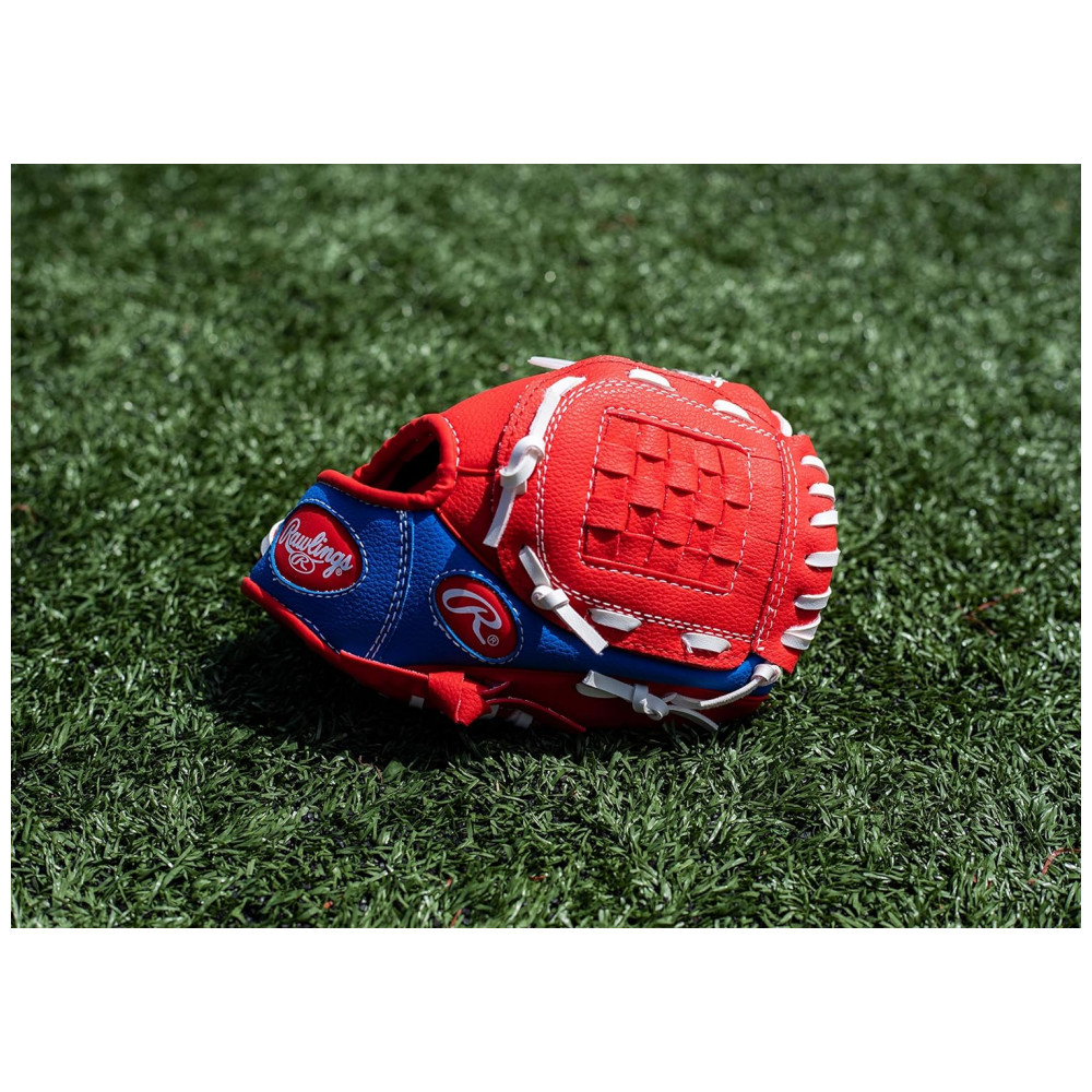 Luva de Beisebol Infantil Direita com Bola para Crianças de 3 a 5 Anos, Rawlings, Vermelha: FECHAR FÁCIL Desenvolvida com uma concha flexível e macia, esta luva é perfeita para jovens atletas fecharem e controlarem facilmente enquanto aprendem os fundamentos do jogo.