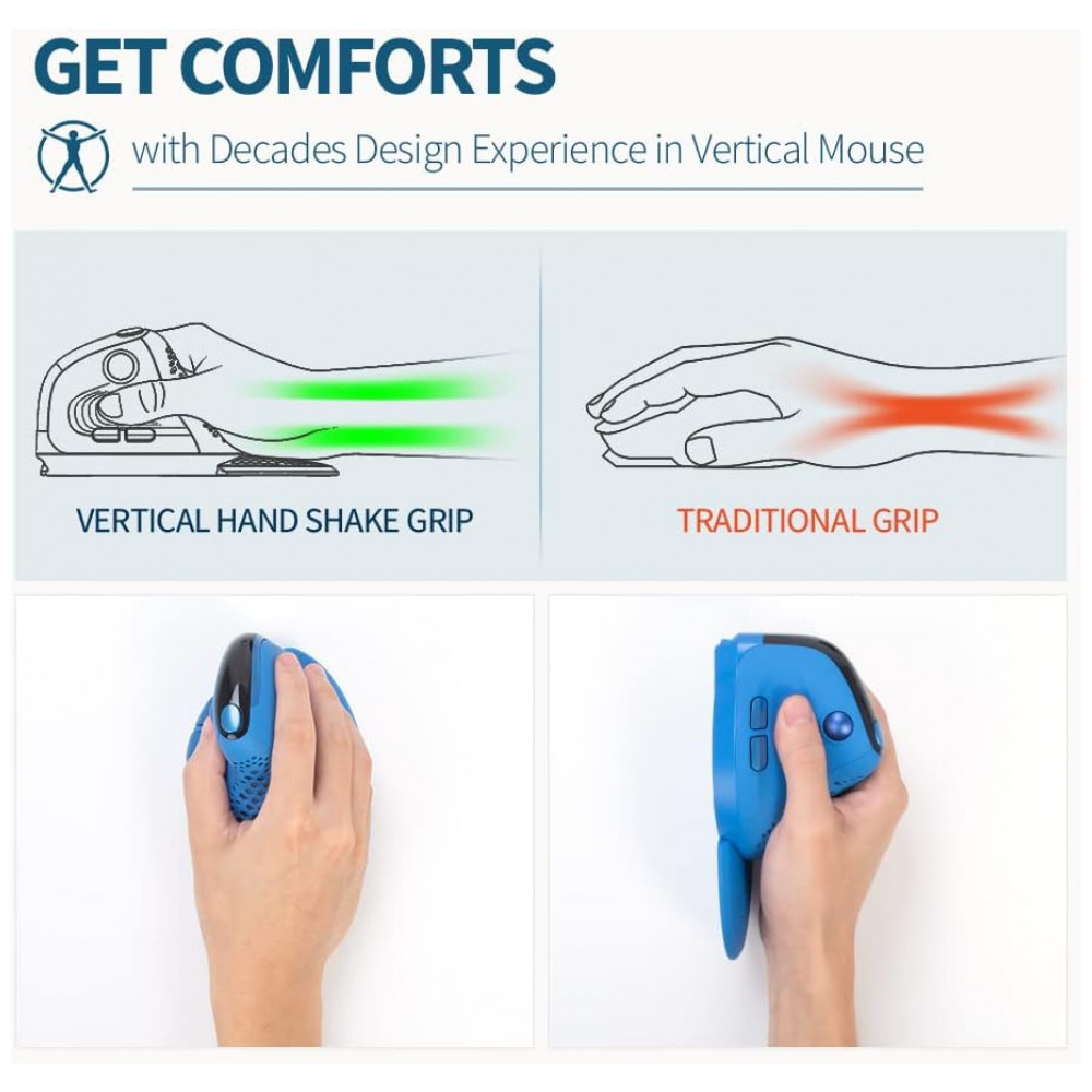 M618SXD Mouse Ergonômico sem Fio Reduz a Tensão do Pulso com 4 Conexões tooth e Luz LED, 7200 DPI, DELUX SEEKER M618XSD Blue, Azul: Veja através do seu mouse O primeiro mouse vertical do mundo com tela OLED, leia os parâmetros essenciais rapidamente.