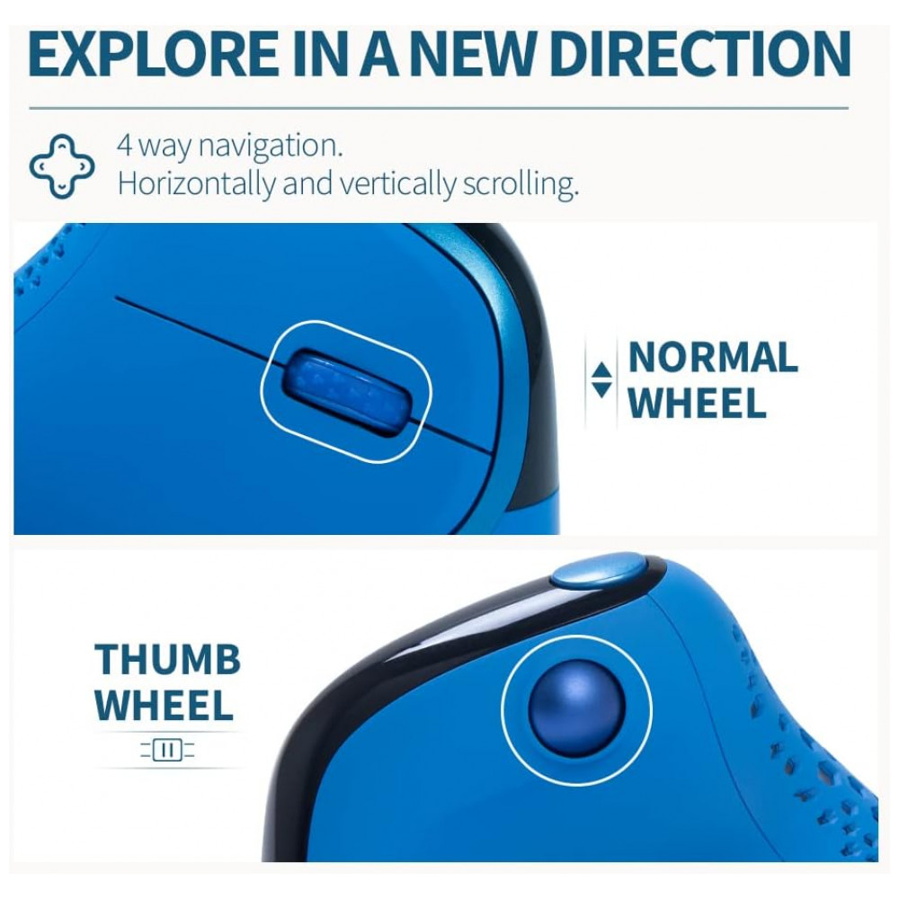 M618SXD Mouse Ergonômico sem Fio Reduz a Tensão do Pulso com 4 Conexões tooth e Luz LED, 7200 DPI, DELUX SEEKER M618XSD Blue, Azul