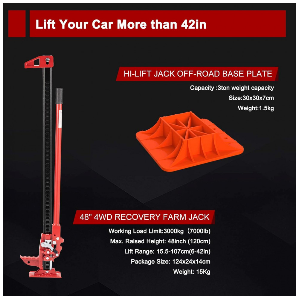 Macaco de Alta Elevação Offroad até 3 Ton com Jack Base Mate, Placa de Suporte para Pneu de Alta Elevação Offroad 4×4 Kit de Recuperação de Neve e Lama e Areia, BUNKER INDUST