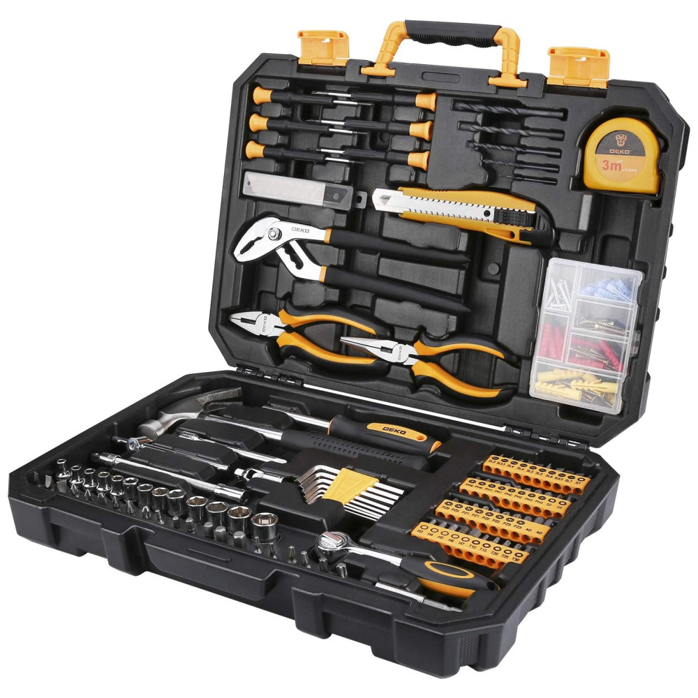 Este kit de ferramentas 196 oferece resistência, durabilidade e proteção anticorrosiva excedendo os padrões críticos ANSI ADAPTABILIDADE Kit de caixa de ferramentas multifuncional e amplo, perfeito para projetos domésticos de DIY, incluindo montagem de móveis, carpintaria, manutenção diária e muito mais FÁCIL DE CARREGAR Alojado em um prático estojo moldado por sopro para fácil zenamento e portabilidade da ferramenta.