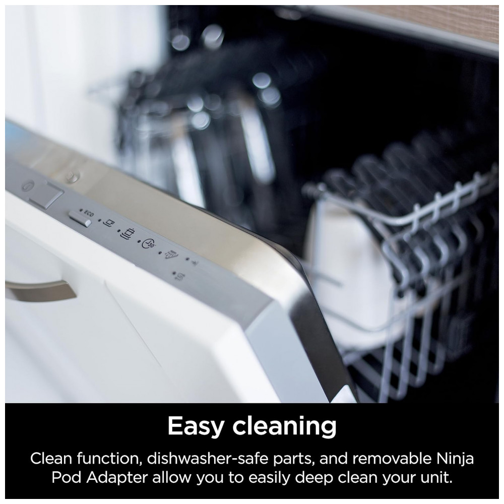 Limpeza Fácil Função de limpeza, peças próprias para máquina de lavar louça e adaptador de pod Ninja removível permitem que você limpe profundamente sua unidade com facilidade.