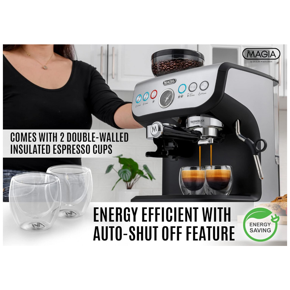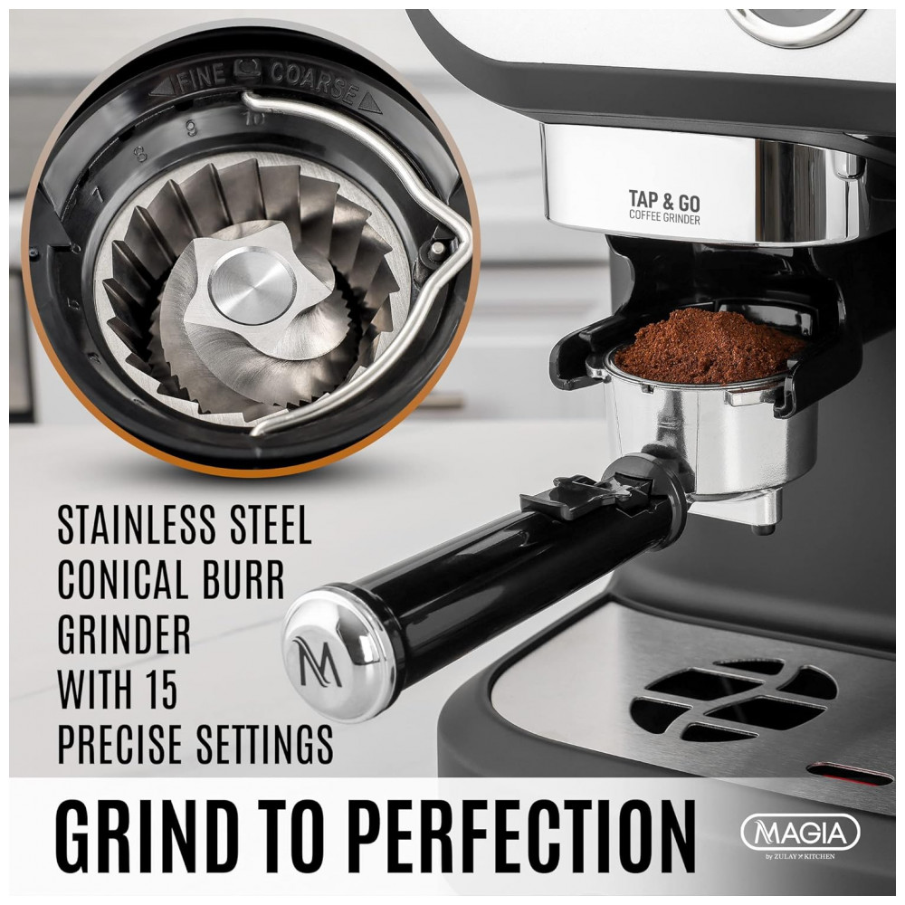 Máquina de Café Expresso 15 Bar com Moedor e Espumador de Leite, 110V, Zulay Kitchen, Preto: O VERDADEIRO ESPECIALISTA EM CAFÉ Esta máquina de café expresso oferece tudo o que um fanático por café precisa para preparar um café perfeito.