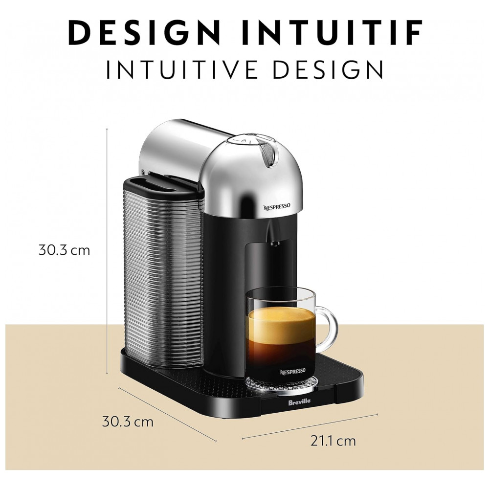 Máquina de Café Expresso 5 xícaras, 110V 1350W, Breville, Cromada: A máquina de café e expresso Nespresso Vertuo prepara 5 tamanhos de xícara de dose única, tudo com o toque de um botão.