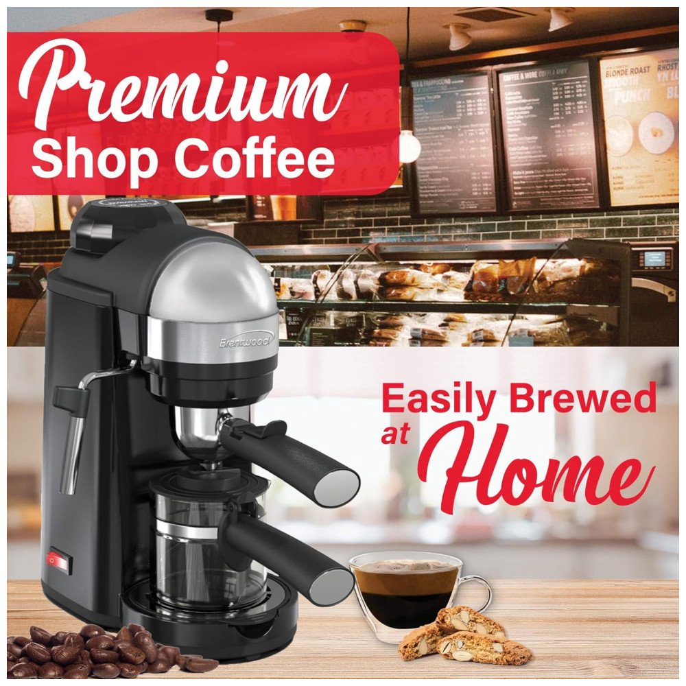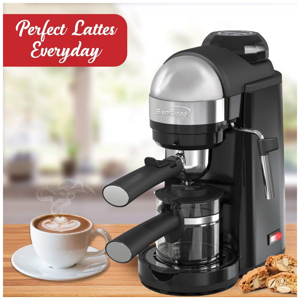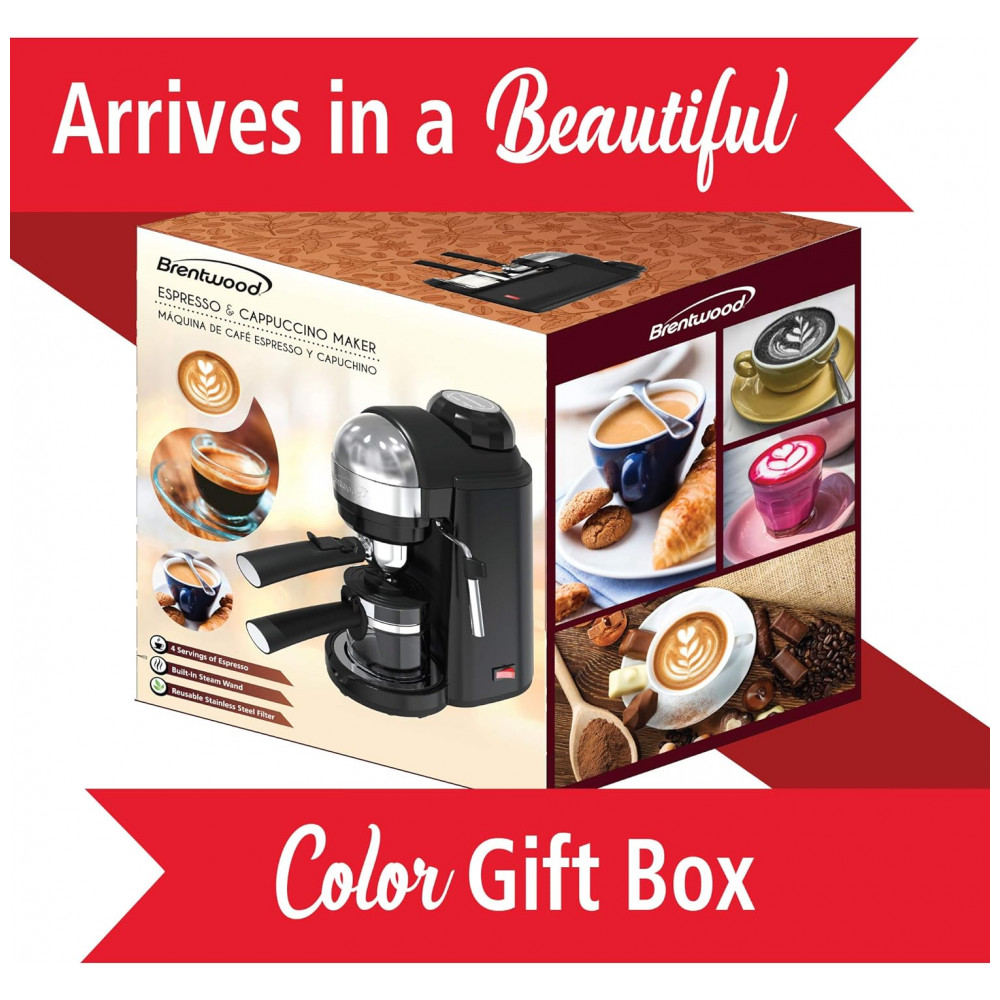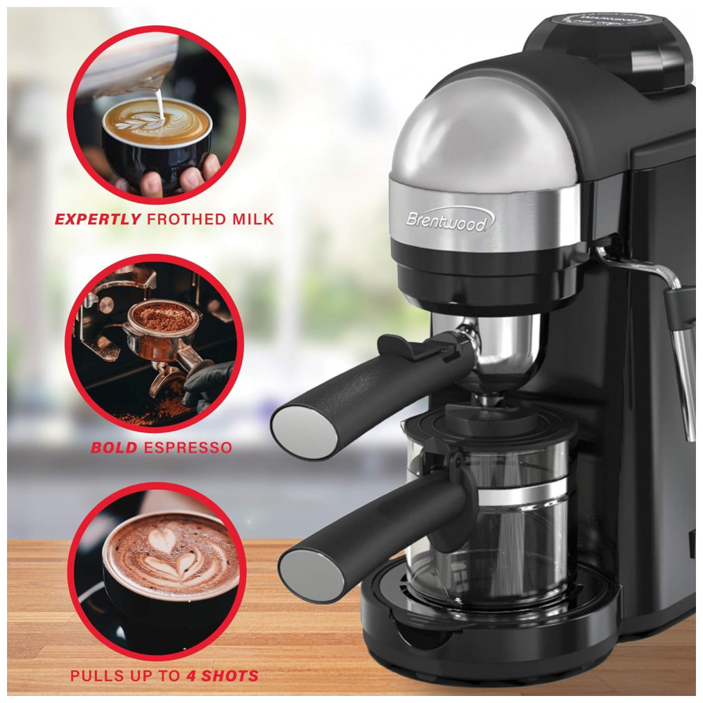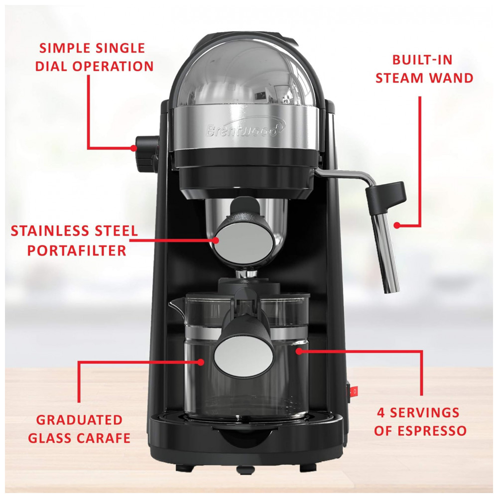 Máquina de Café Expresso Brentwood GA 135BK com Vaporizador, 110V 800W Preto: Potência 800 watts Prepara até 4 porções Porta filtro de aço inoxidável reutilizável Cabeça de grupo de toque frio e jarra de vidro temperado Vaporizador embutido para cappuccinos e lattes