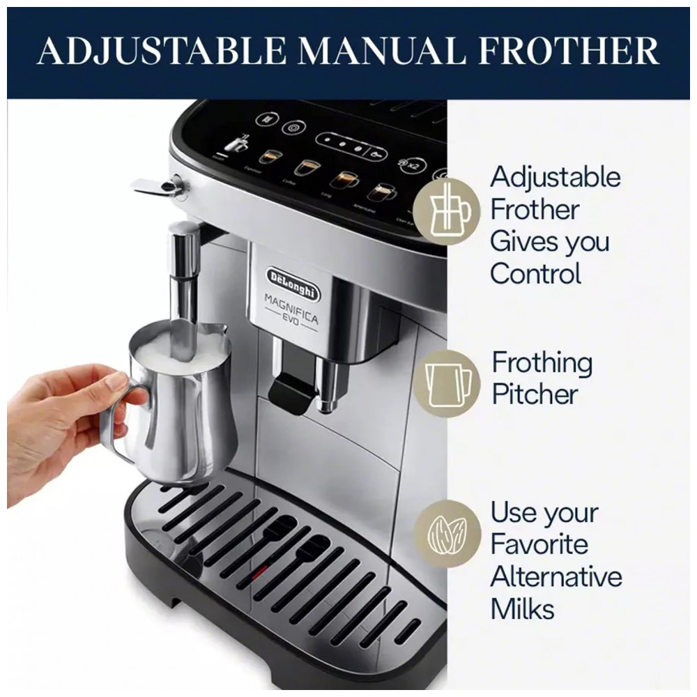 Desfrute das suas bebidas de café expresso italianas favoritas no conforto da sua casa com o excepcionalmente intuitivo Magnifica Evo.