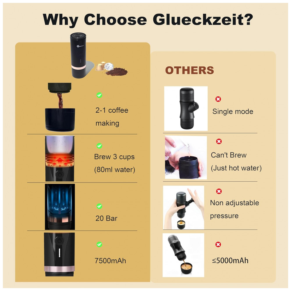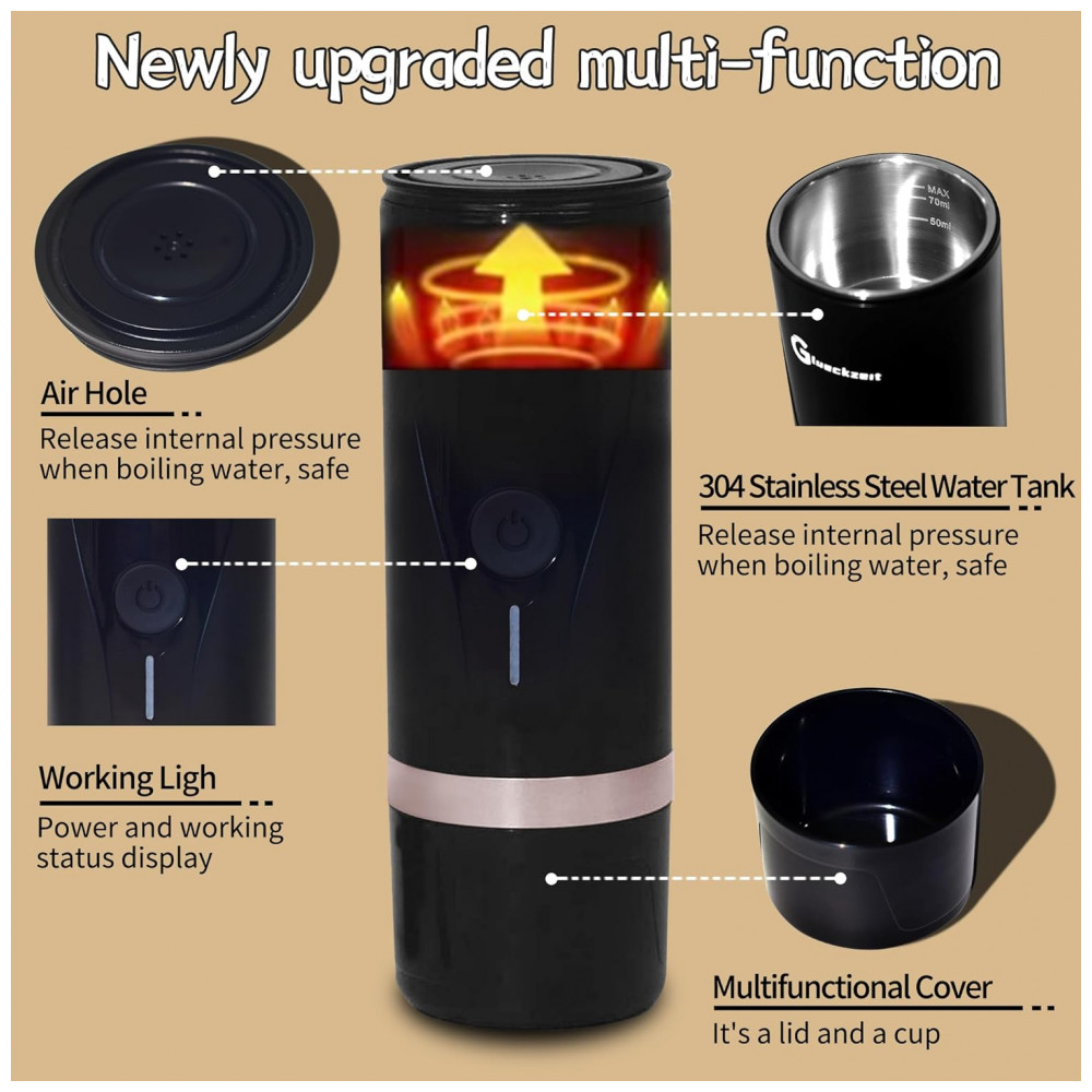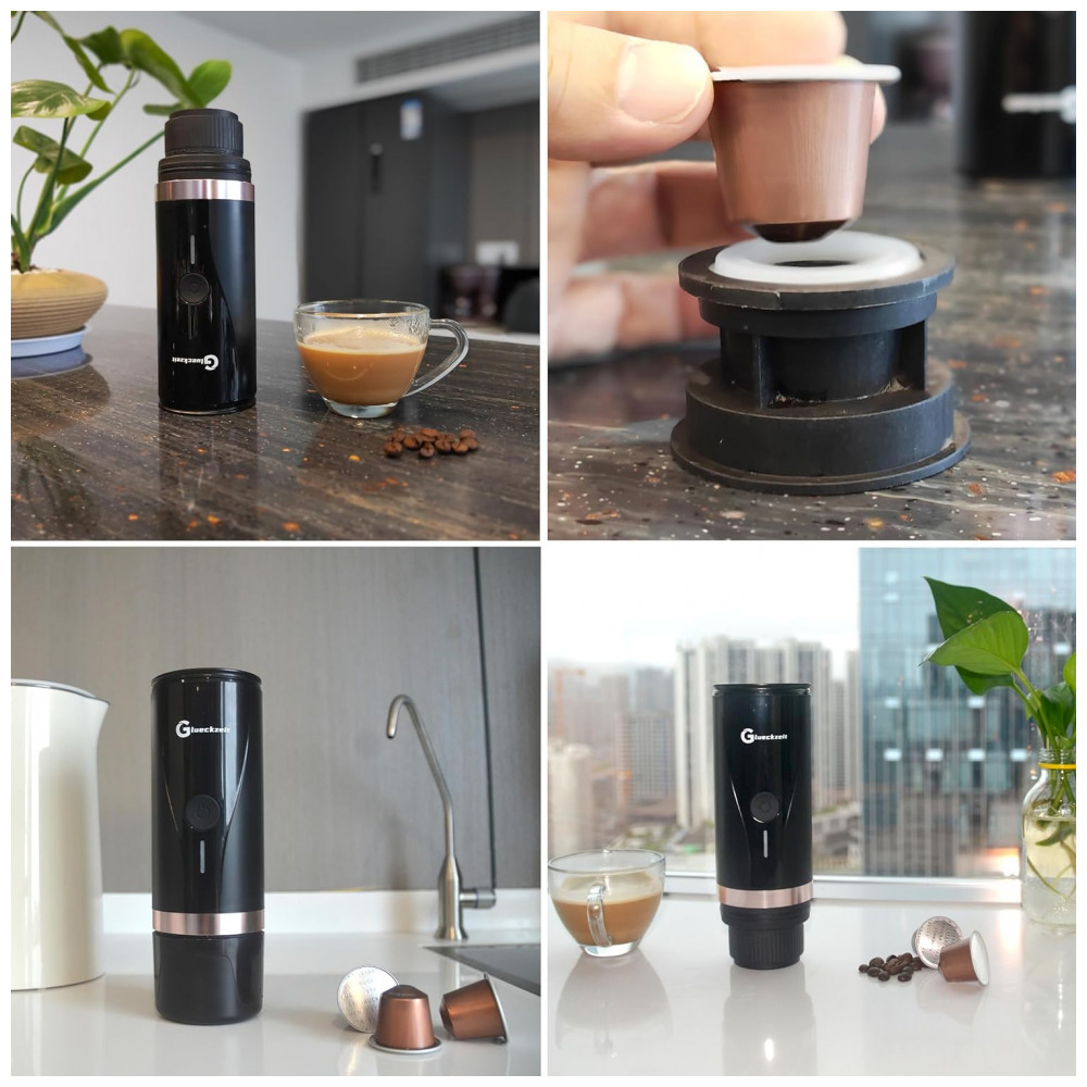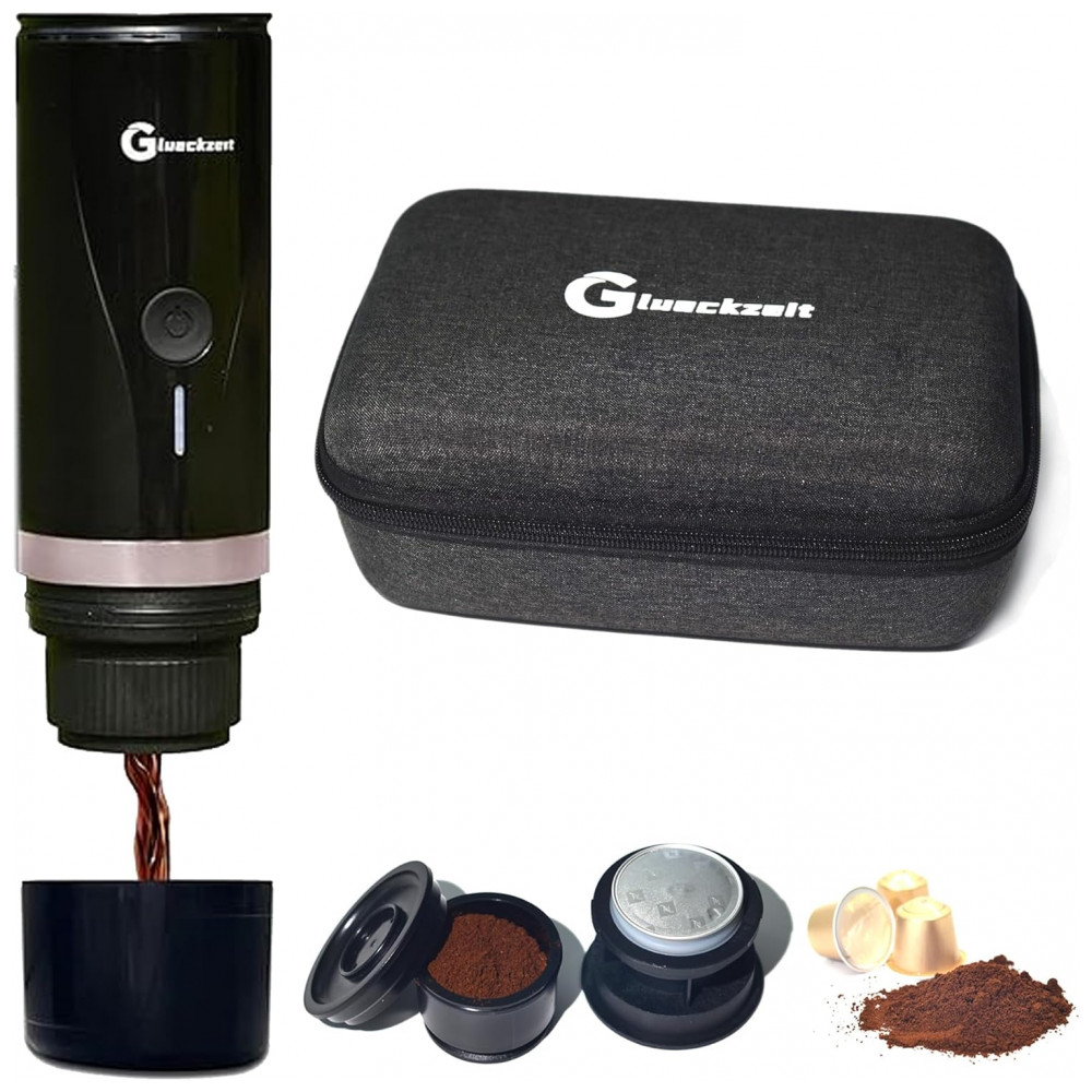 Máquina de Café Expresso Elétrica Portátil Recarregável com Autoaquecimento, Glueckzeit, Preto