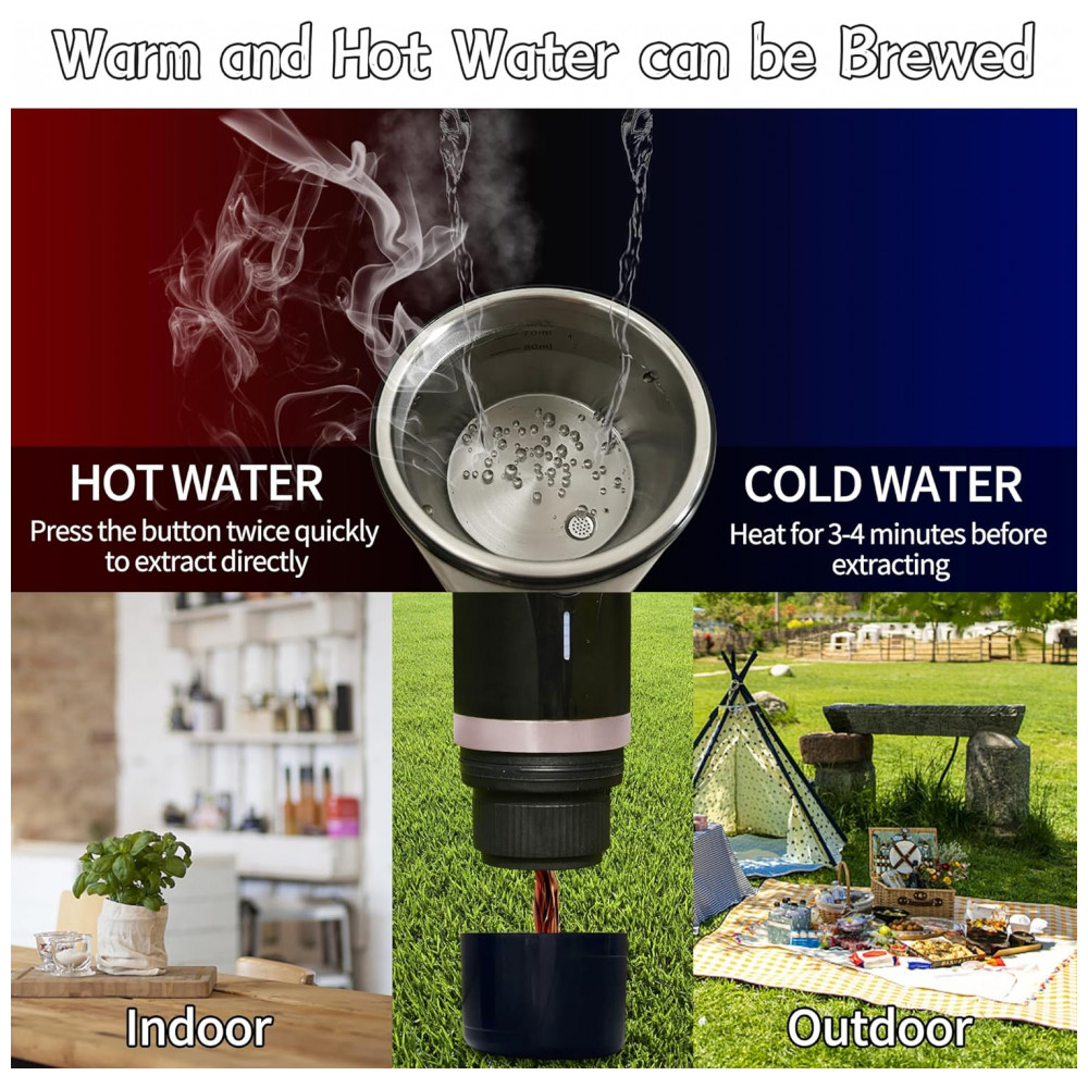 Máquina de café expresso portátil atualizada Devido ao design compacto, nossa mini cafeteira se tornará seu item obrigatório em qualquer lugar, café expresso fácil Aumentamos a fun…