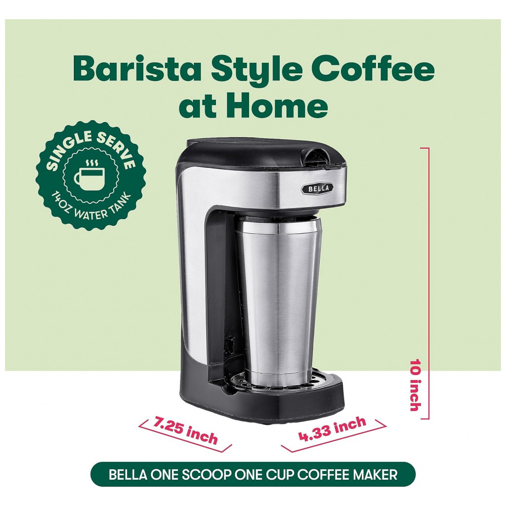 O tanque de água de 14 onças e a bandeja de gotejamento ajustável permitem que você prepare uma deliciosa xícara em minutos com o mínimo de limpeza ECONOMIZADOR DE ESPAÇO Uma ótima opção para cozinhas, escritórios, estúdios e dormitórios menores, a cafeteira One Scoop One Cup tem um design compacto e simplificado que não sobrecarrega uma bancada.