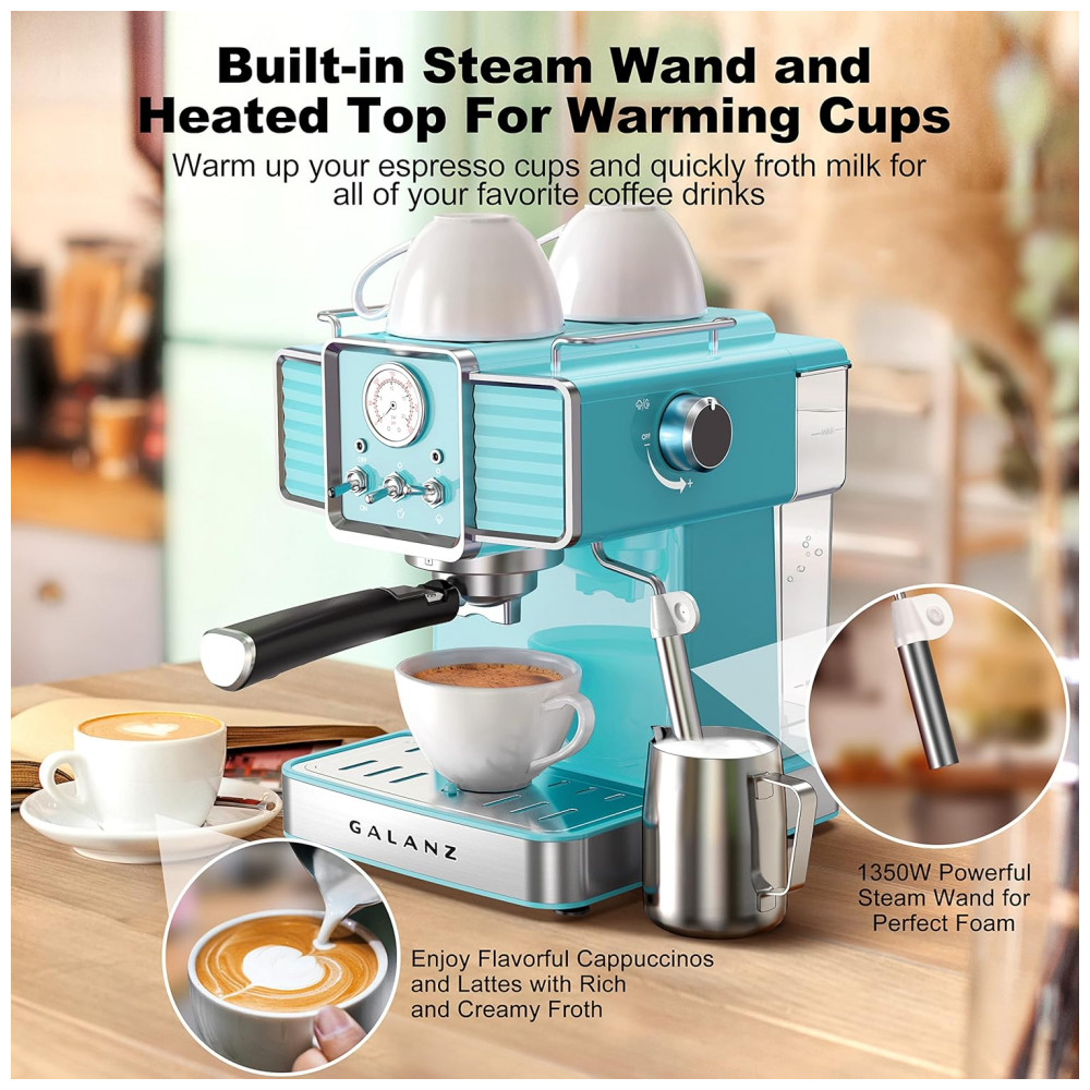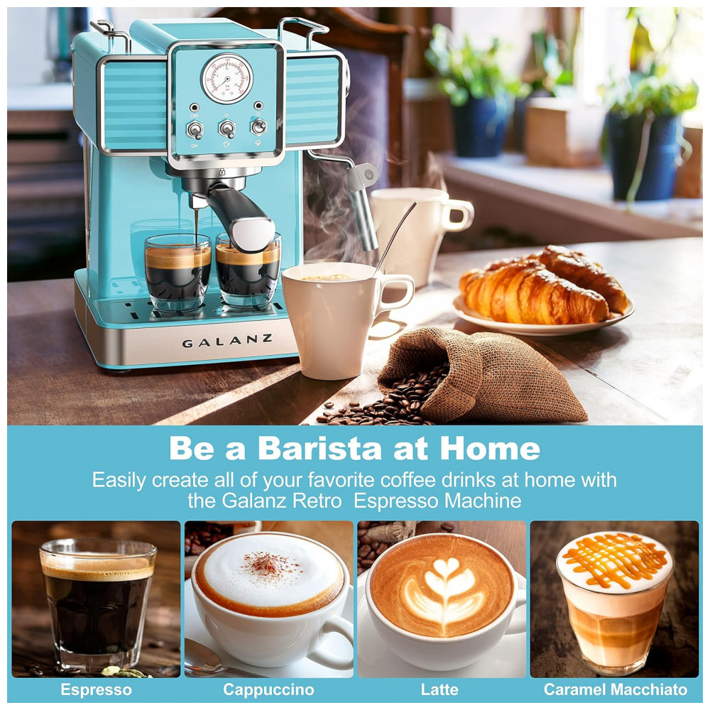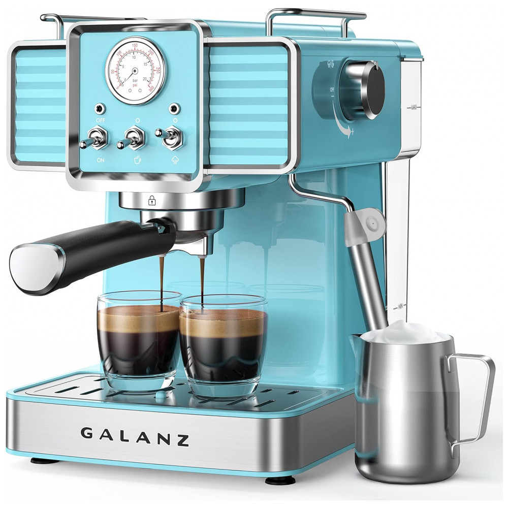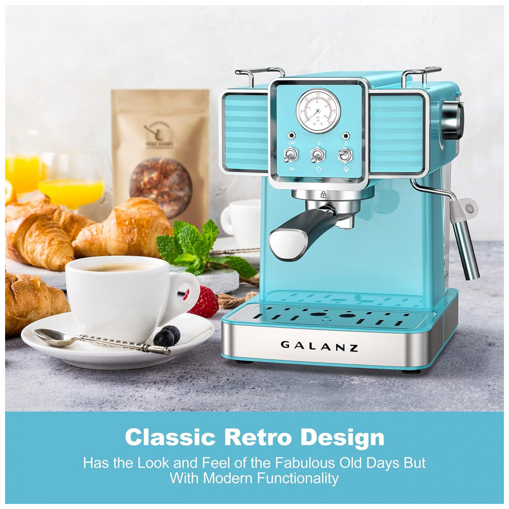 Máquina de Café Expresso Retrô 15 Bar com Bocal de Leite, 110V, Galanz, Azul