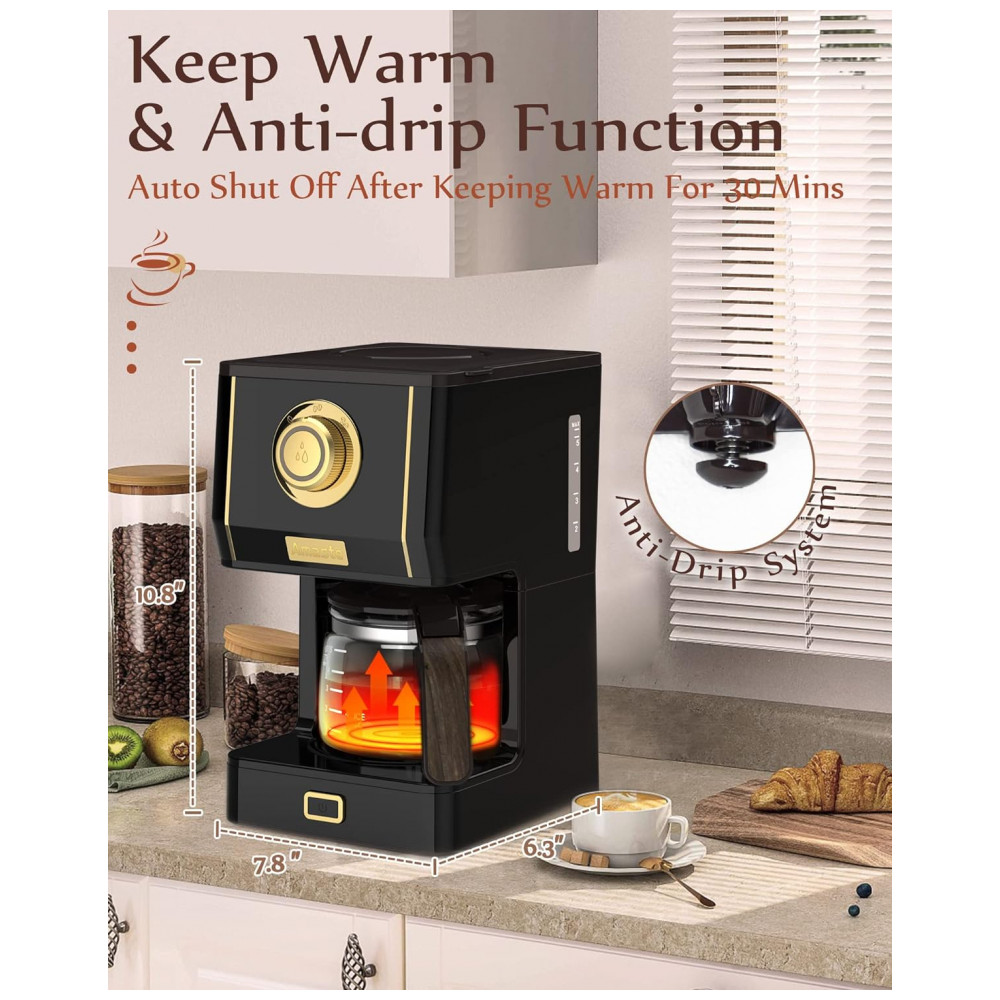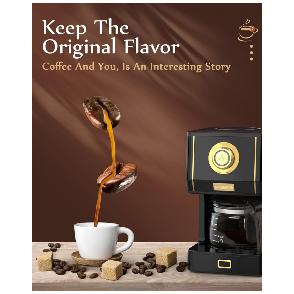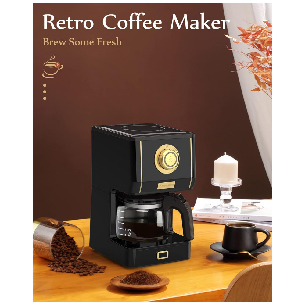 AMASTE Retro Style Coffee Machine com cafeteira de vidro com design elegante, pode ornamentar perfeitamente sua cozinha, sala de estar e escritório.