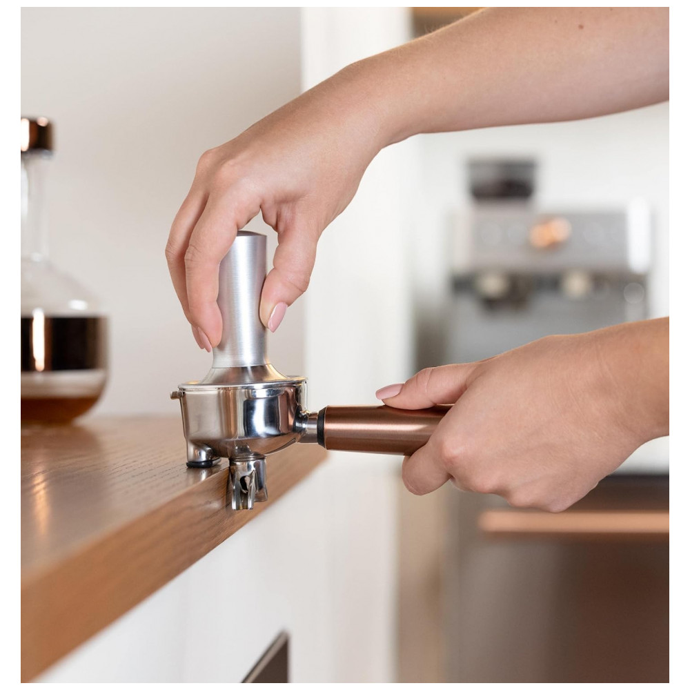 Moedor de rebarbas cônico embutido e tamanho de moagem ajustável Obtenha o sabor perfeito com qualquer grão torrado graças a um moedor de rebarbas cônico que fornece uma quantidade exata de pó de café fresco diretamente no porta filtro.