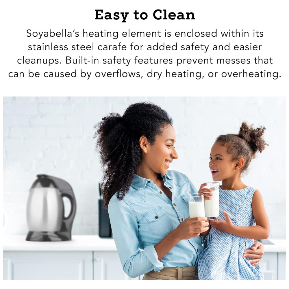 Ao contrário de outros fabricantes de leite de soja, a Sobella apresenta uma serpentina de segurança não reconhecida, mas apresenta um elemento de segurança completo dentro de sua câmara de ebulição em aço mais fácil e adicional.