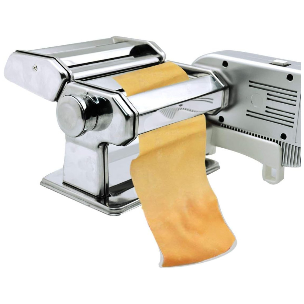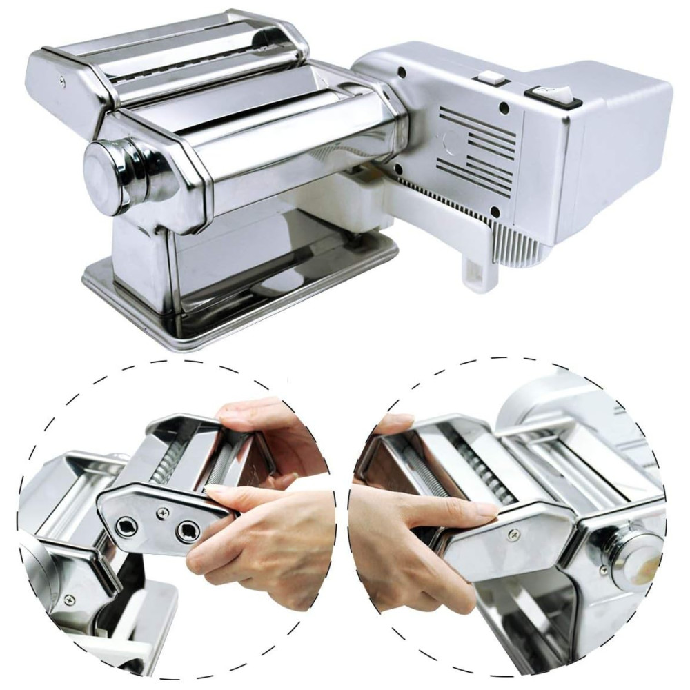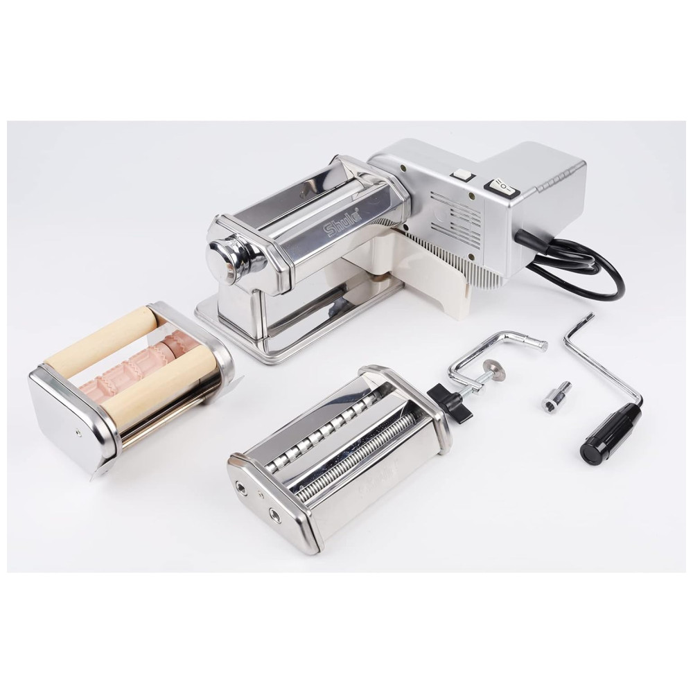 Máquina de fazer massa inclui manivela motorizada e rolos multifuncionais para ravióli de massa, SHULE, Prateado