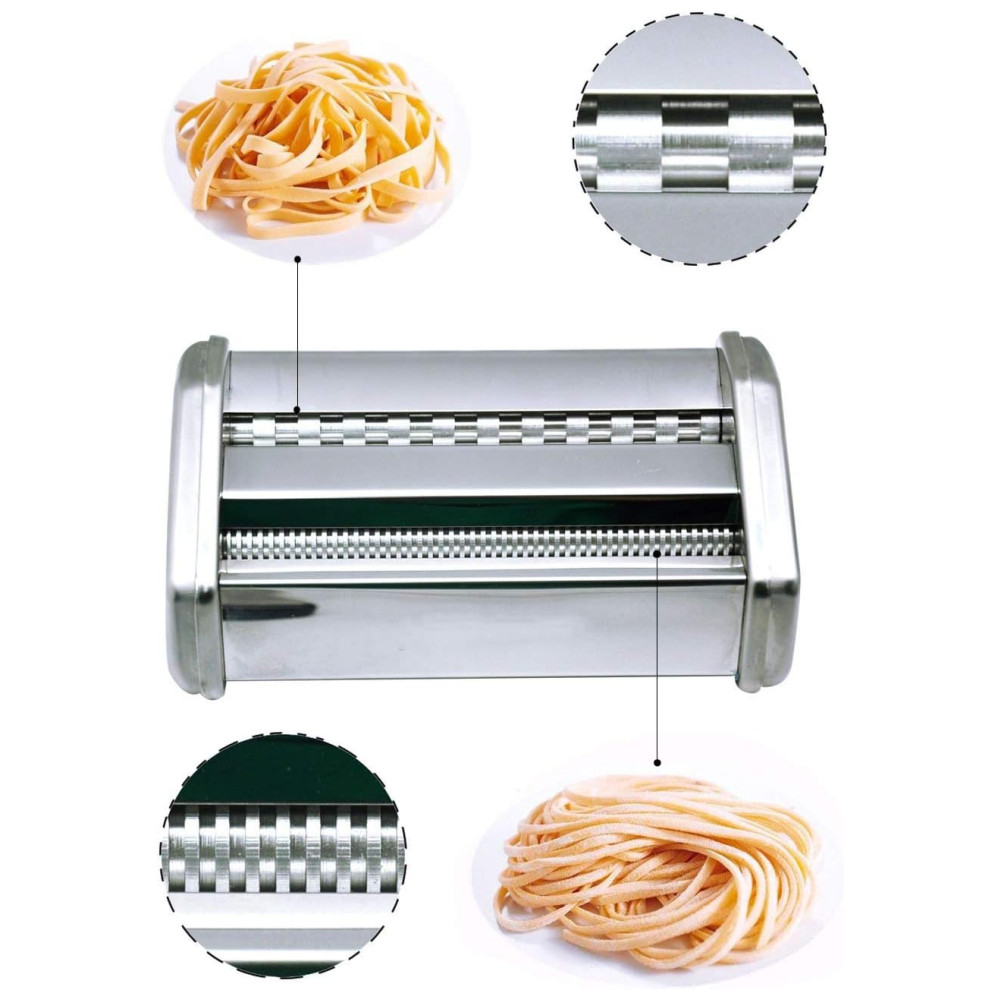 Máquina de fazer massa inclui manivela motorizada e rolos multifuncionais para ravióli de massa, SHULE, Prateado: O corpo desta máquina de fazer massas é feito de aço inoxidável de alta qualidade e os cortadores de rolos são feitos de alumínio anodizado.