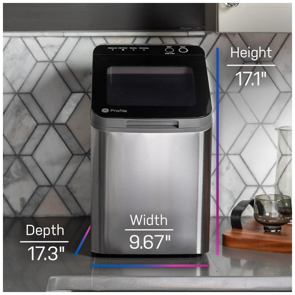 Máquina de gelo 15,4 kg por Dia com Acabamento em Aço Inoxidável, 110V 360W, GE PROFILE, Preta e Prata