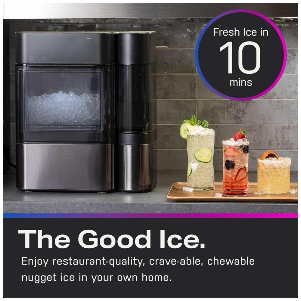 Máquina de gelo 17,2 kg por Dia com Tanque Lateral e Conectividade por WiFi, 110V, GE PROFILE, Preta: A máquina de gelo Opal Nugget Ice é perfeita para quem deseja um gelo mastigável, crocante e saboroso em suas bebidas favoritas.