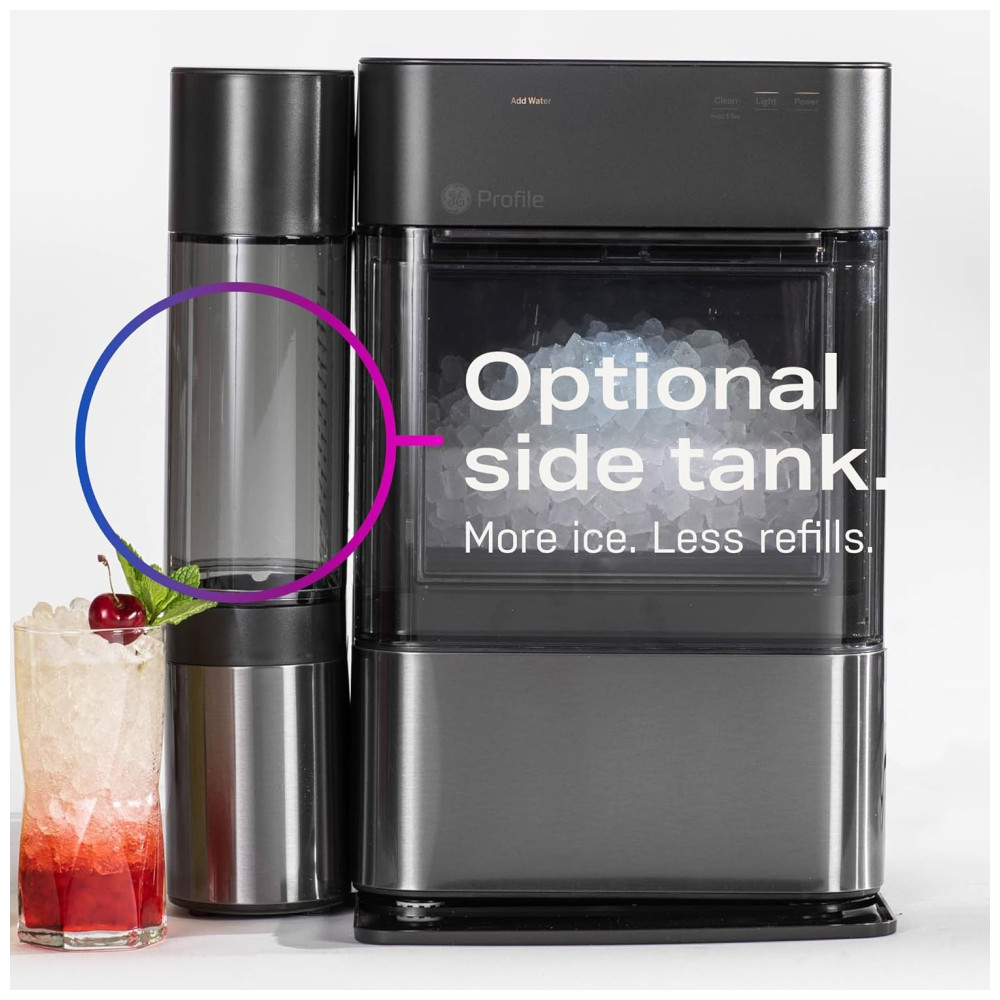 Especificações do produto Nome do modelo GE Profile Opal Nugget Ice Maker com tanque lateral Dimensões do produto 44,45 cm x 26,67 cm x 41,91 cm Capacidade 1,36 quilos Potência 2 watts