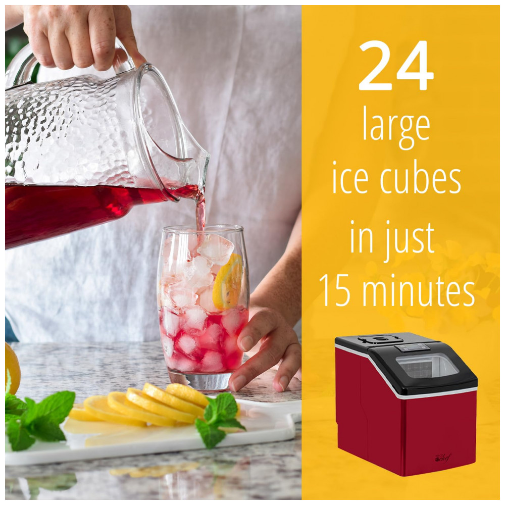 FABRICAÇÃO DE GELO MODERNA Não deixe sua próxima bebida à beira da piscina ou uísque da noite ficar sem gelo Para festas, uso diário da família, camping RV, salas de descanso no escritório e muito mais O fabricante de gelo Deco Chef 40LB criará gelo consistente, claro e limpo de maneira confiável é hora de descartar as bandejas