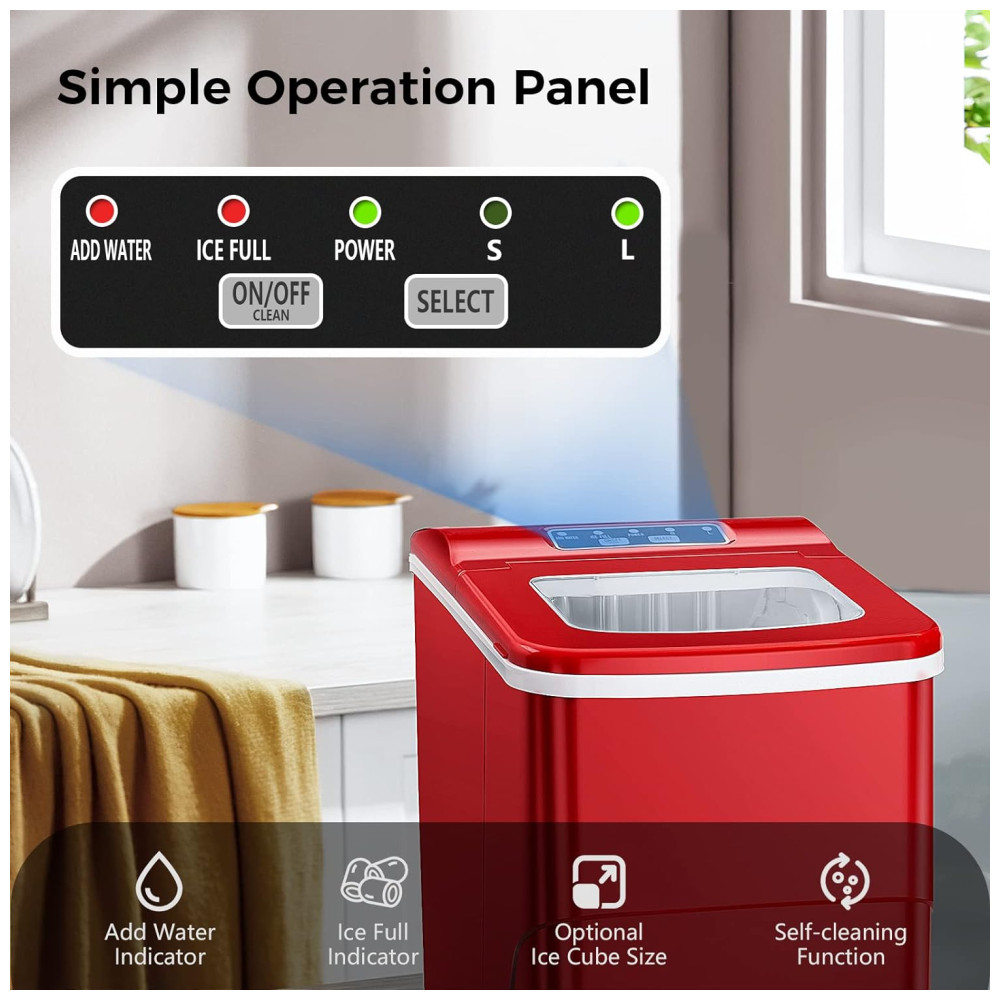 Máquina de Gelo, Portátil, Produz 12kg, Dia 9 Cubos, 6 8 min, 110v, AGLUCKY, Vermelho