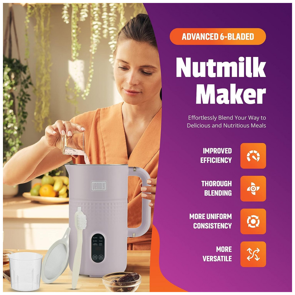 Máquina de Leite Vegetal 1L com Lâminas de Aço Inoxidável e Acessórios, Venoly, Roxa: A Máquina para fazer leite vegetal Venoly é a solução perfeita para quem busca uma maneira fácil e prática de preparar bebidas caseiras à base de plantas.