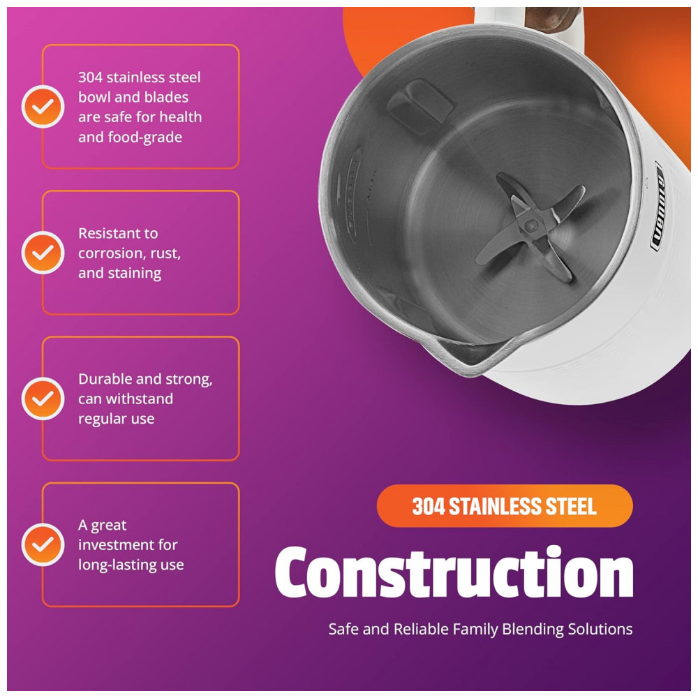 Ela foi habilidosamente construída com materiais seguros para alimentos, garantindo que seu delicioso leite de nozes nunca seja contaminado.