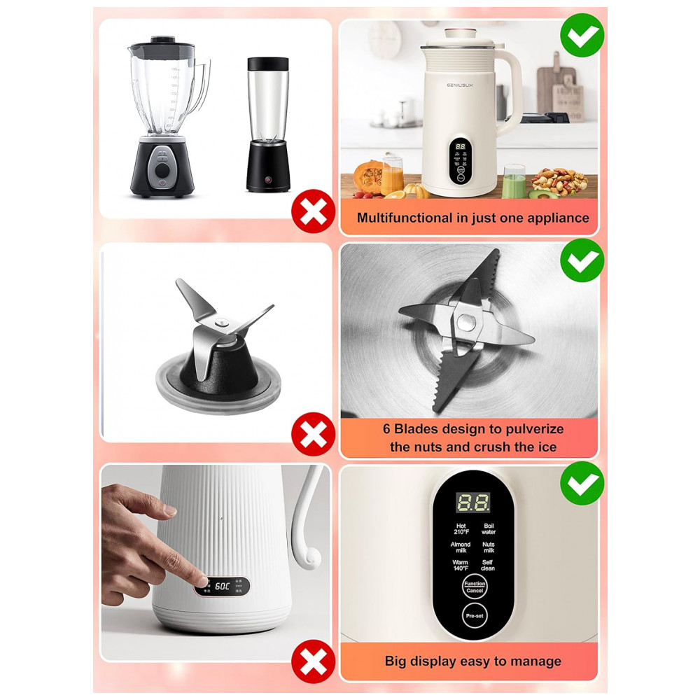 Máquina de Leite Vegetal 700mL com Limpeza Automática e Controle de Temperatura, Geniuslix, Branca