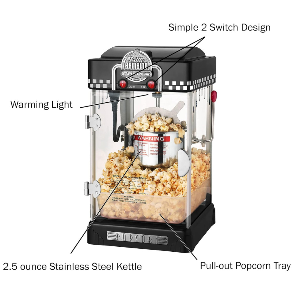 Máquina de Pipoca Little Bambino com Chaleira de 0,09g e Acessórios 25 Sacos de Servir Inclusos