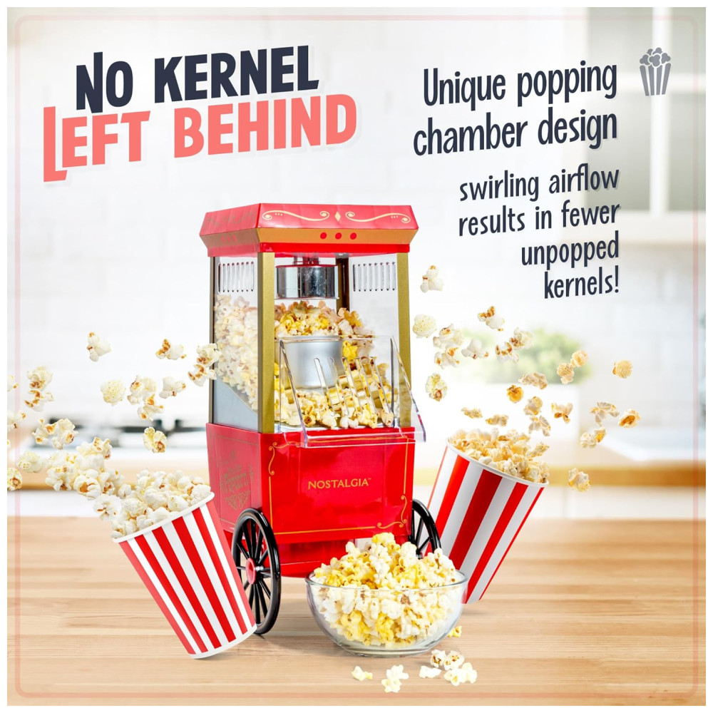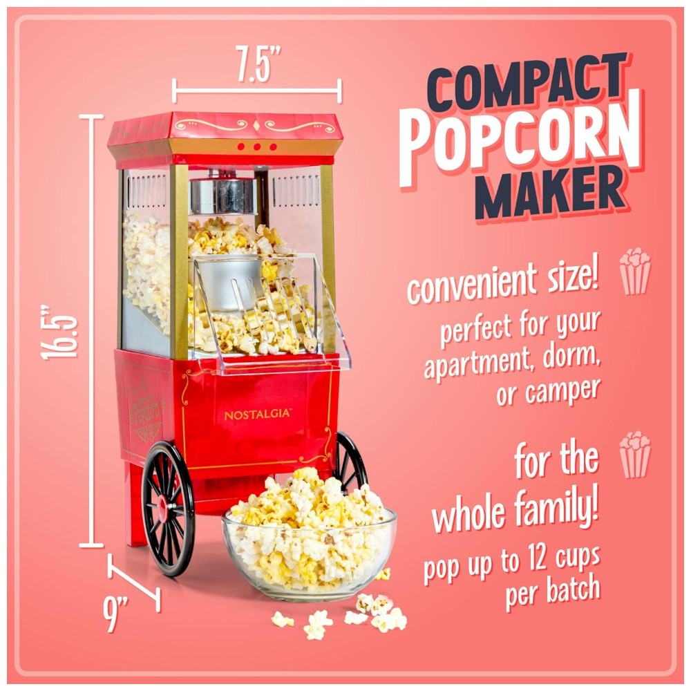 Máquina de Pipoca de Ar Quente Nostalgia estilo cinema 12 xícaras sem óleo, com tampa medidora.