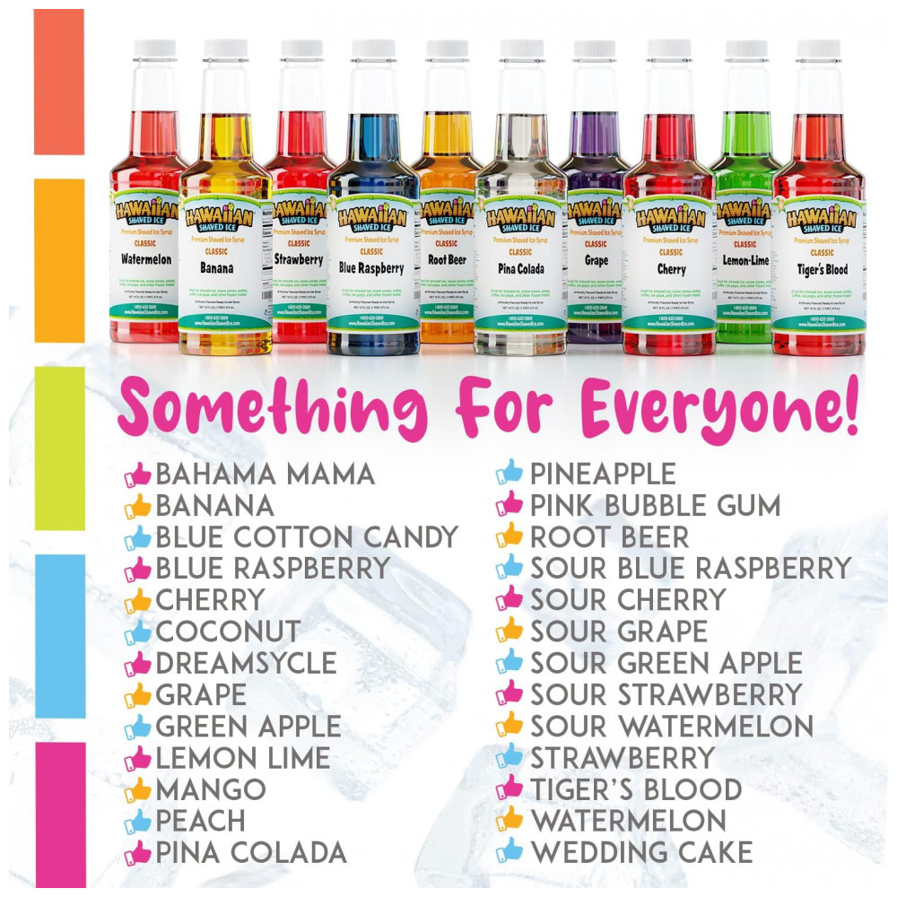 NEVE Basta adicionar gelo no topo da máquina S700 e você estará fazendo deliciosos cones de neve em pouco tempo DIVERSÃO EM FAMÍLIA Ideal para jovens e jovens de coração XAROPE SUPERB Nossos sabores são s por milhares de profissionais de gelo raspado e casquinhas de neve em todo o país FÁCIL DE USAR Basta adicionar gelo e torcer a tampa GOSTO DE ARCO ÍRIS Precisa de mais variedade Confira o pacote de xarope de 10 sabores de gelo raspado havaiano ou o pacote de xarope de 20 sabores, que apresenta sabores adicionais de dar água na boca VENDIDO SEPARADAMENTE
