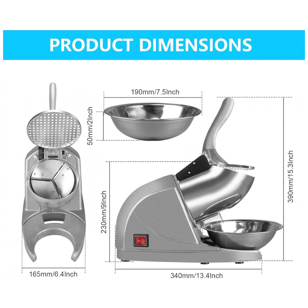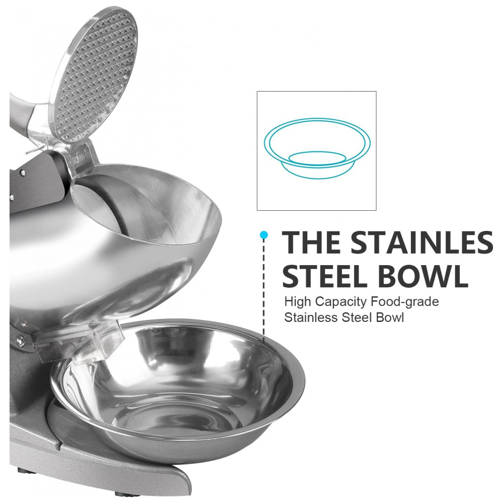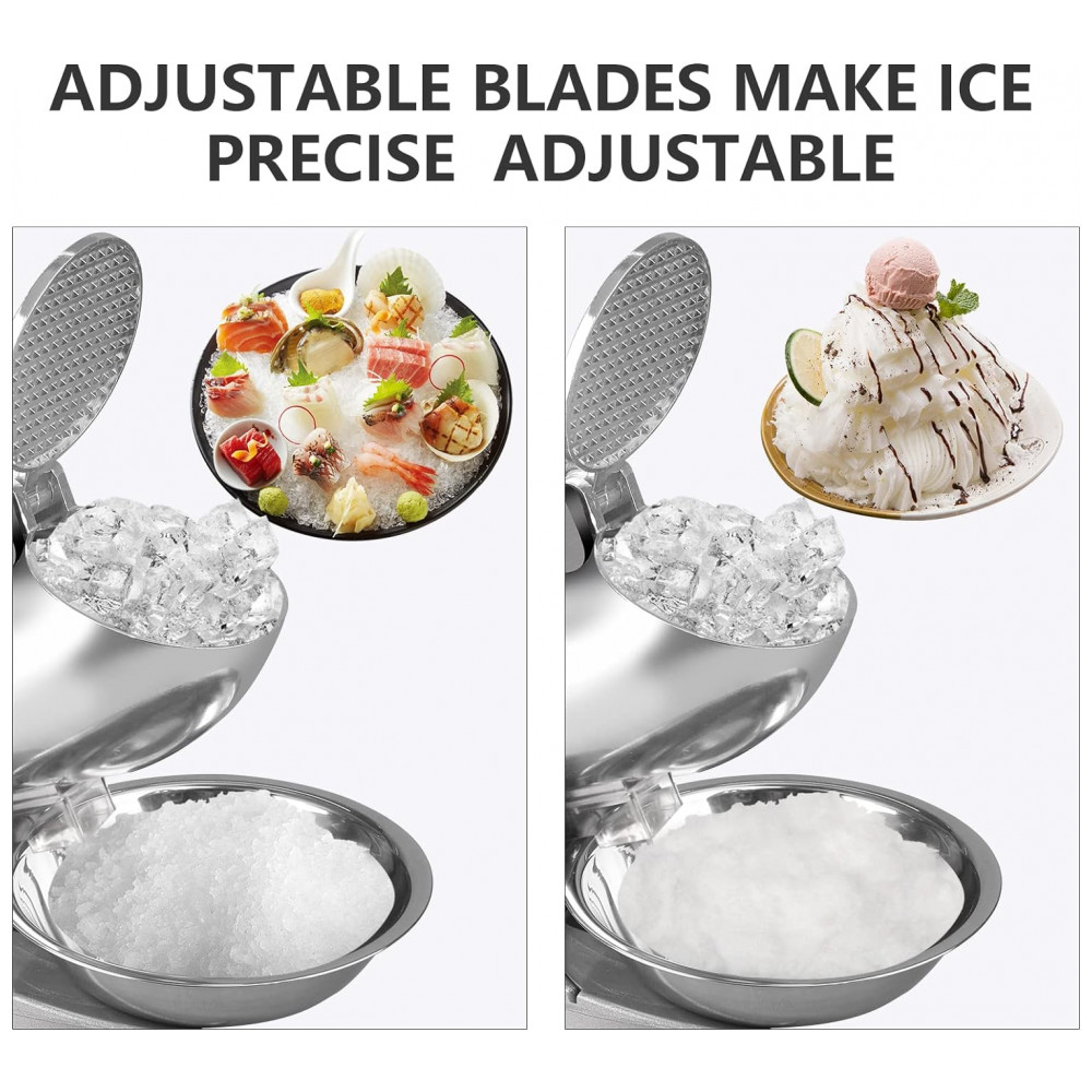 304 MATERIAL DE AÇO INOXIDÁVEL O triturador de gelo adota lâminas de aço inoxidável não corrosivas de grau alimentício e tigelas de gelo para garantir uma vida útil mais longa.