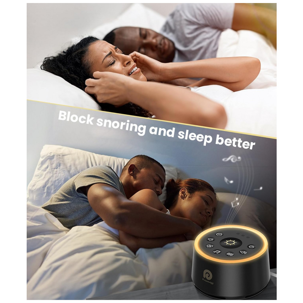 Máquina de Ruído para Dormir, 24 Sons com Luz Ambiente Programável, 110v, DREAMEGG, Preto