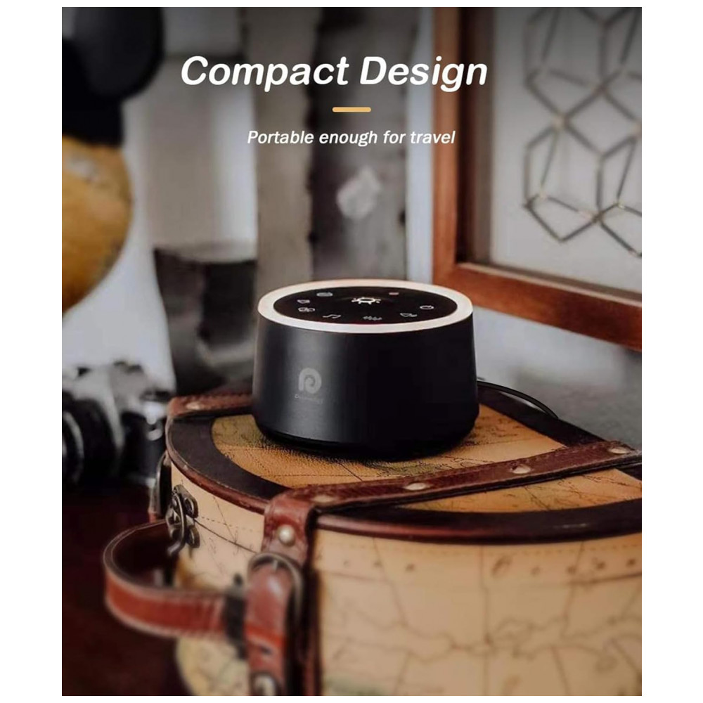 A máquina portátil de ruído branco pode ser facilmente embalada em sua bolsa ou mala tornando se uma ótima máquina de som para viagens.