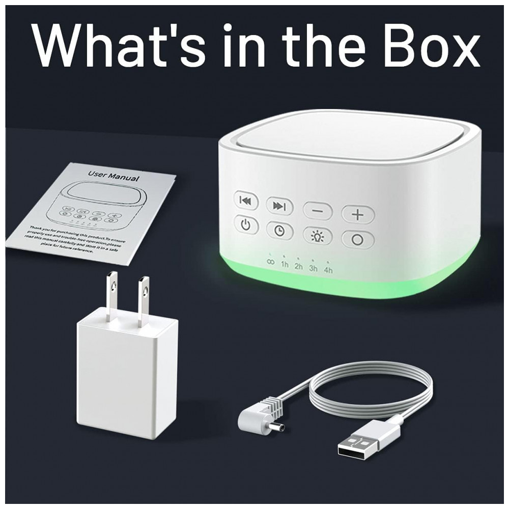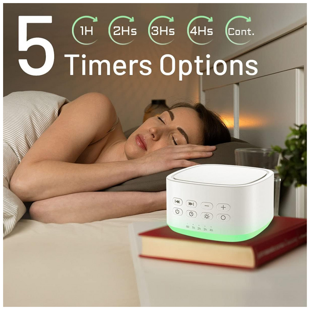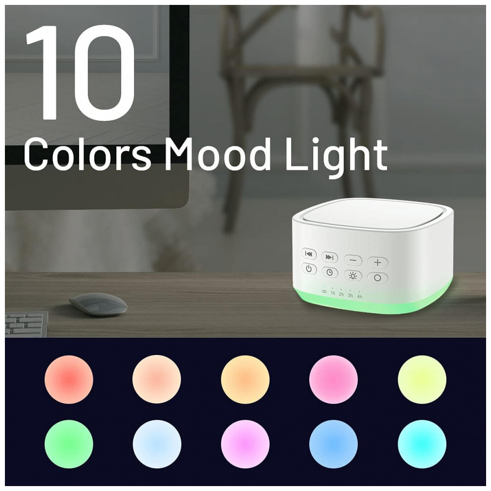 Máquina de Ruído para Dormir, 25 Sons com 10 Luzes Ambiente Programável, 110v, MAGICTEAM White, Branco