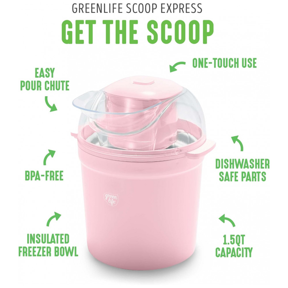 Máquina de Sorvete Automática 1,5L de Capacidade, 110v, GREENLIFE CC005073 001, Rosa: A capacidade de 1,5 L oferece muito espaço para o seu doce A calha de despejo fácil é especialmente projetada para sobremesas sem bagunça Rápido e fácil de usar sua sobremesa favorita em 20 minutos ou menos Tigela de freezer isolada coloque a no freezer durante a noite e aproveite A pá de mistura permite combinar facilmente seus ingredientes favoritos Uso de um toque Basta apertar o botão e começar a misturar Especialmente projetado para configuração rápida e simples