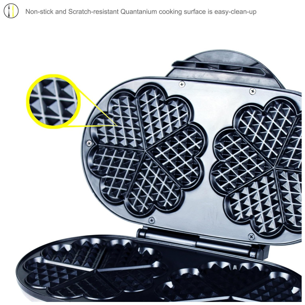 O ferro de waffle 10 em 1 assa 10 deliciosos waffles de coração em minutos, fáceis de cortar Indicador de luz lembra o tempo de cozimento perfeito Controle de escurecimento para fa…